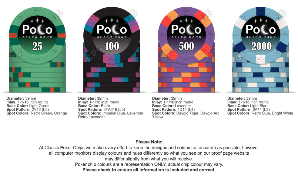 I believe Paulson inlays are randomly oriented. CPC inlays and spots are oriented the same way they are mocked up in the chip design tool. I specifically rotated the edge spots on my 2V12 chips by 90° and my 4D14 chips by 45°:
