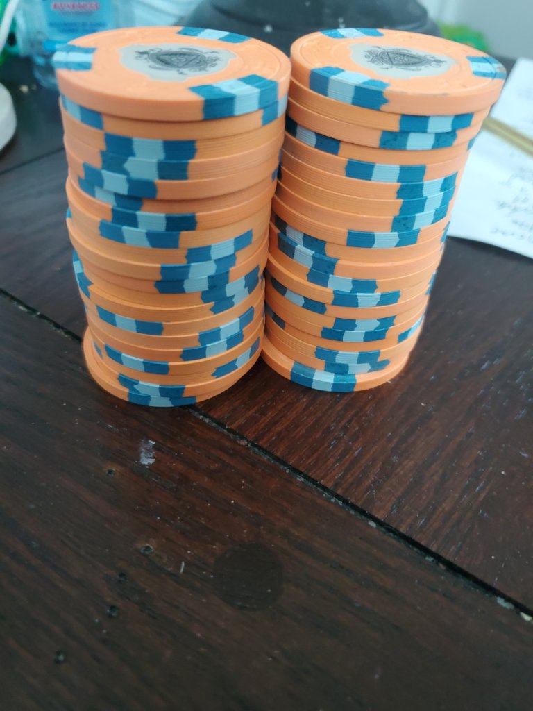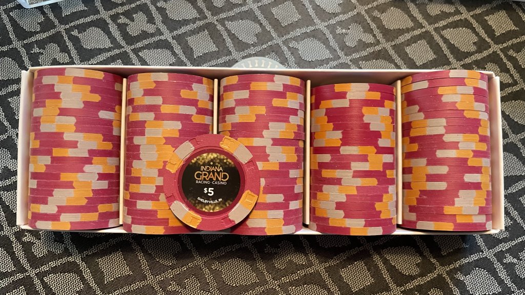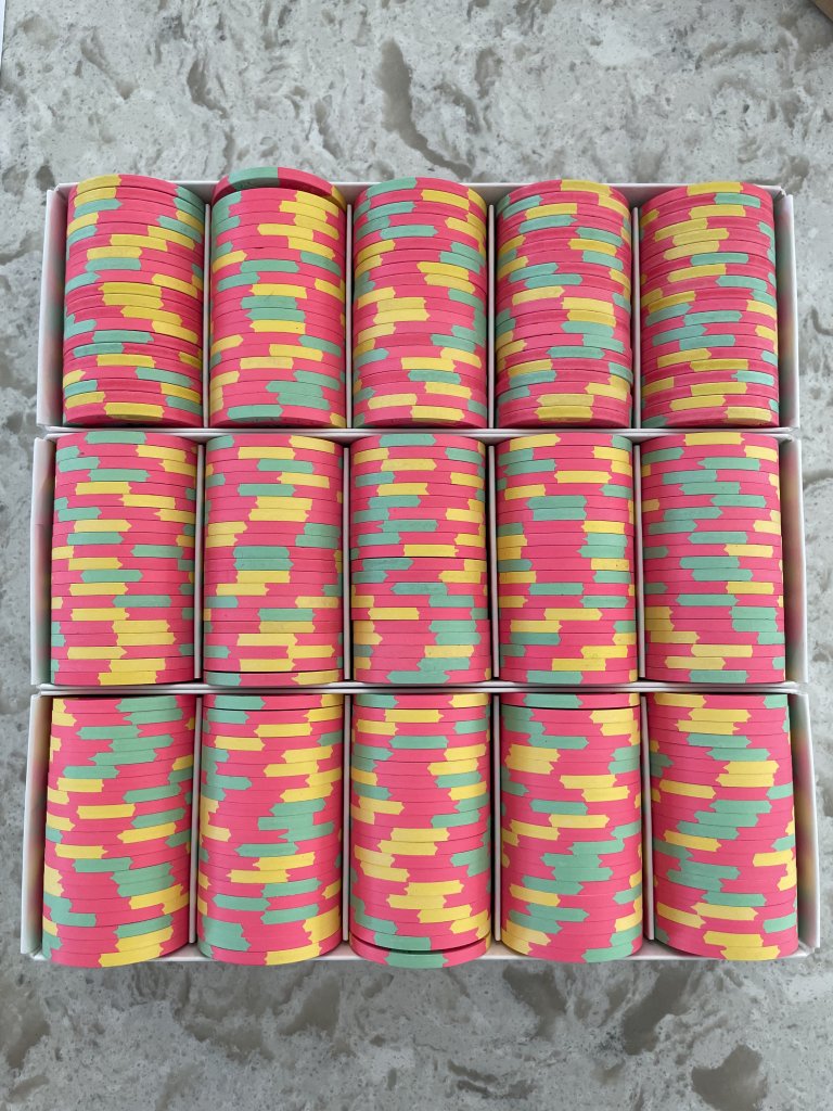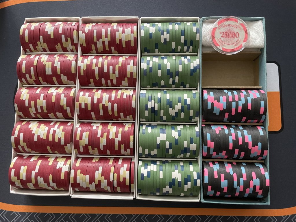 Stuck at home with Covid, but my Great Wall $25 chips arrived today (courtesy of @sbp8984) completing (at least temporarily) my Golden Eagle $5 mixed set. If the FLV $1's and Golden Eagle $5's create too many dirty stack issues I will look to swap out the FLV $1's for perhaps the King's $1 (when/if 2 King racks become available again, preferably in a non-auction war scenario like we've seen recently (yikes)). But I am hoping that the arc yellow in the FLV $1's is sufficient to generally prevent many dirty stack issues.