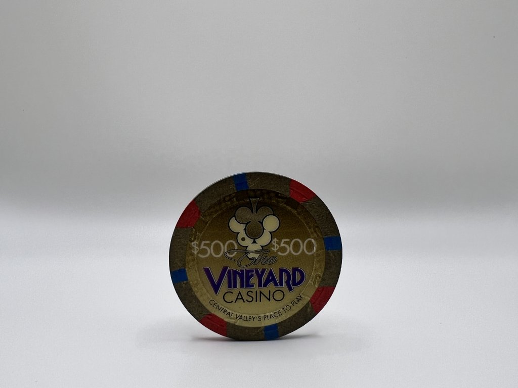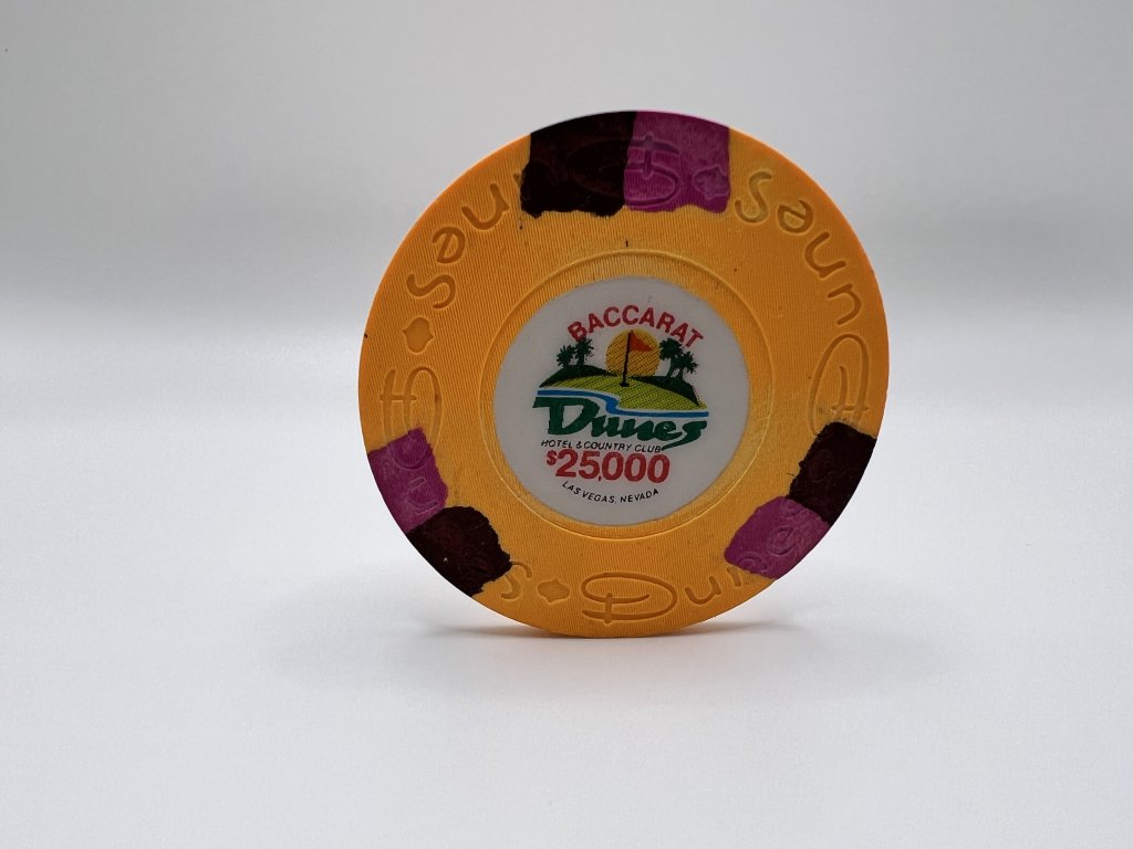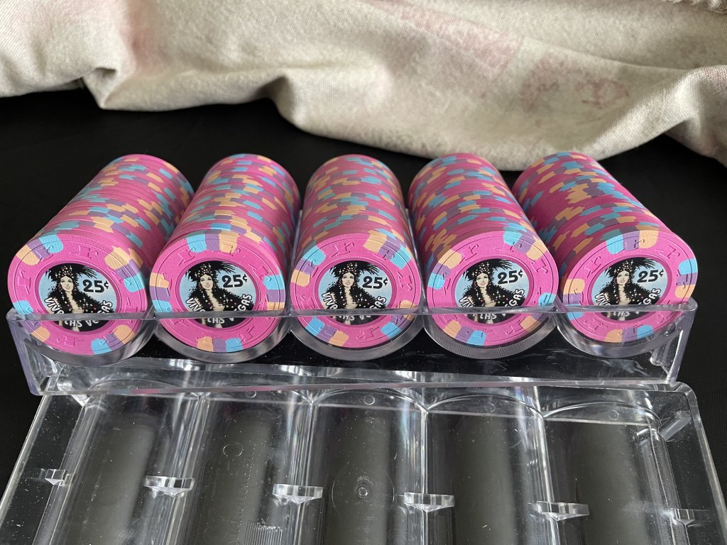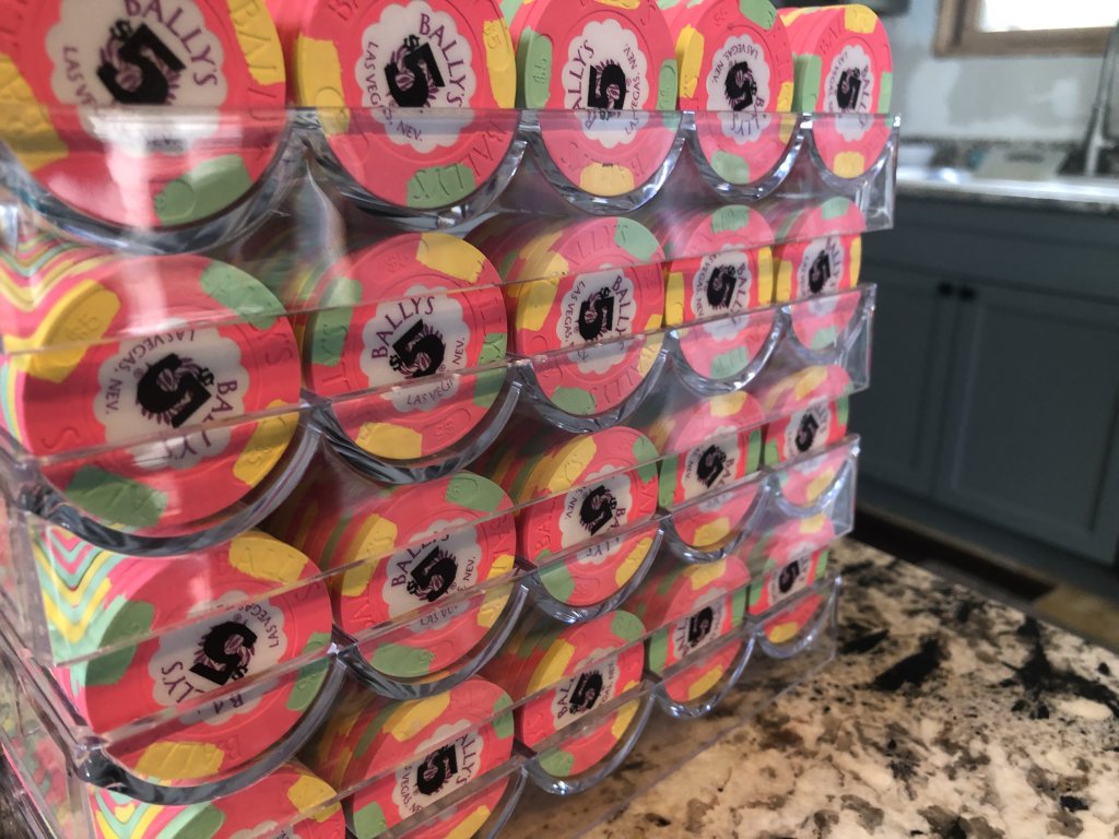 I'm definitely not a fan mixed with Paris $1s/$/5s b/c of the mold difference (PCA people can put hits out on me, I know I know) ... but I think as a standalone chip, it's pretty unique. The silvery/sparkly base color is very nice and the pink half-circles give a pop of color. Certainly could be used as a frac! I used the Santa Ysabel $25 as a frac and it has the same half-circls and some metallic coloring as well.
