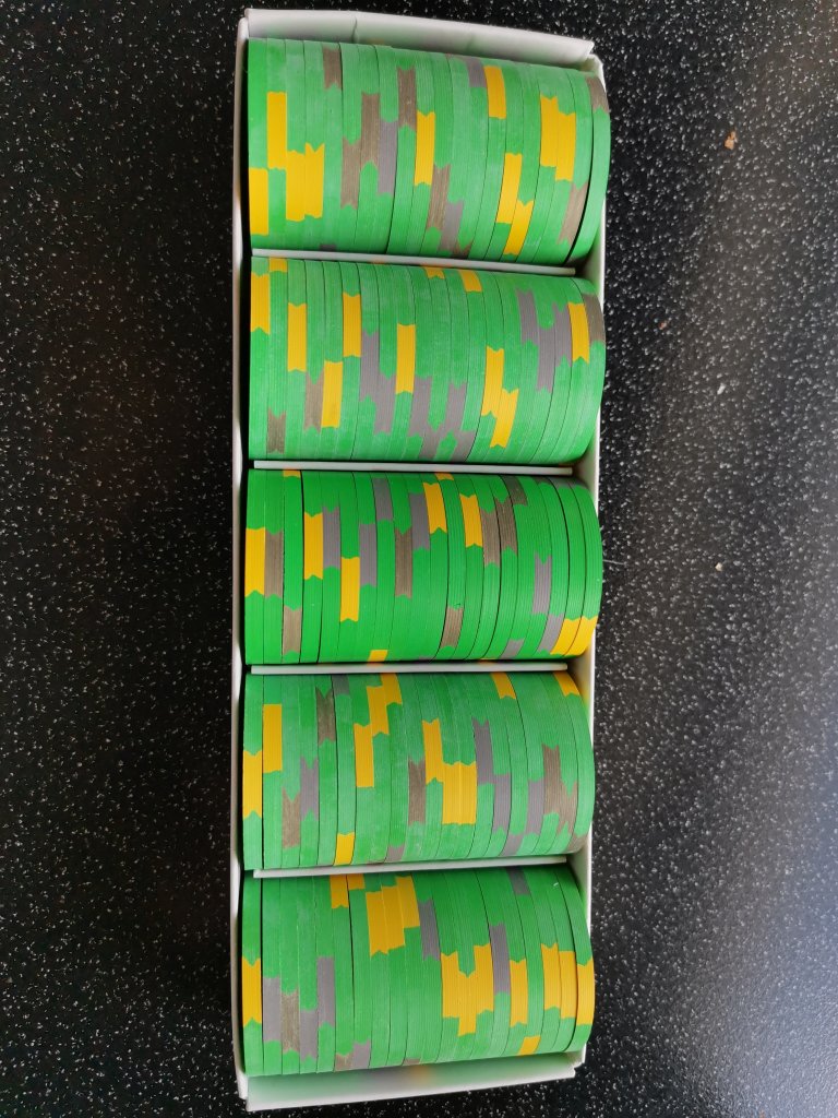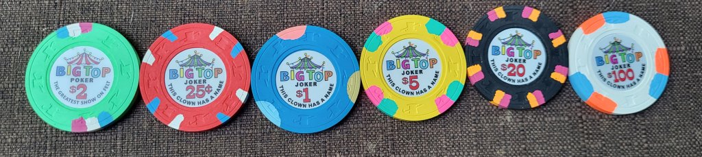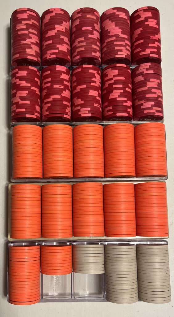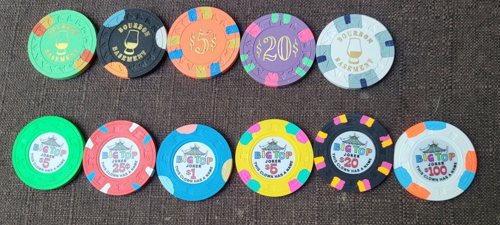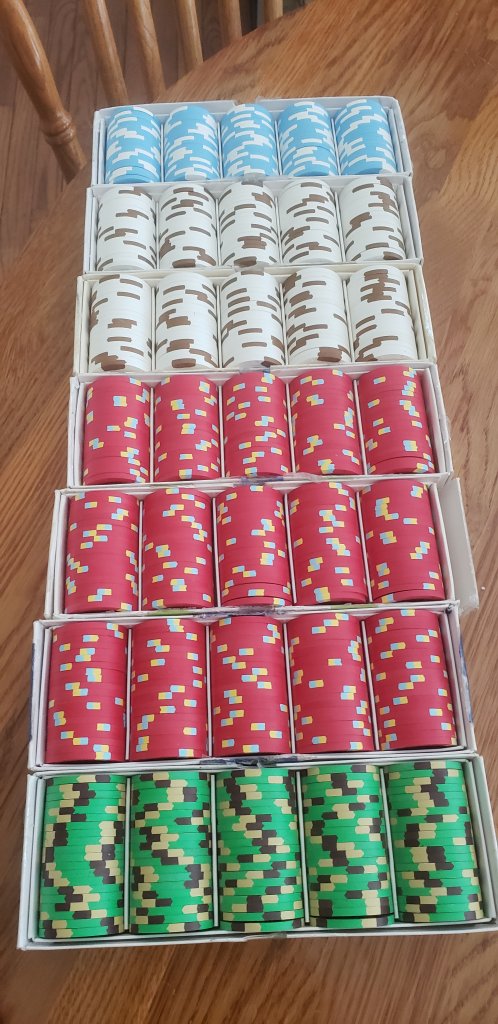 Given that I'm using solid day greens for my own re-label set, it should go without saying that I'm a fan of them. That said, I'm inclined to agree with @Ben0586 on this one. Those BTP $2s look great in that lineup. Love the red quarter, but I think I'd still love to see a 3-spot $0.25 chip in that spot too... how do we get you a rack of BTP fracs?? They'd be so amazing in this lineup.
