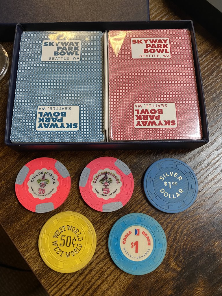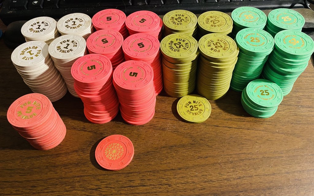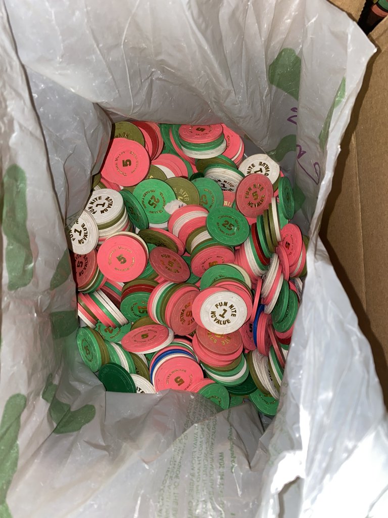 16 triangle mold nickels. Why? Uhh, because they were $2.99 and nobody else bidded? Haha, so stupid. Even funnier, the seller messaged me saying oh, I only have 16 of these, do you want them or do you want a refund? I looked back at the auction and it said 20, but it pictured 16. What am i gonna do, refuse $3 worth of chips? Ha.