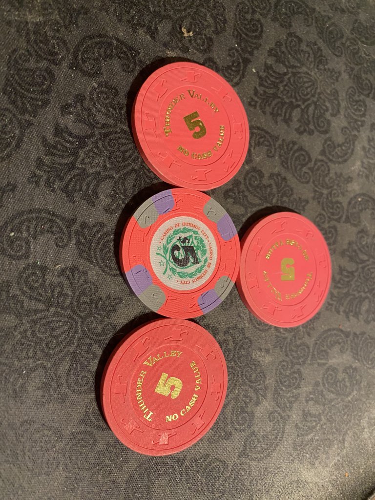 And last but not least, a little eBay find that was a steel at under $30! Shit, I think the $500 Dunes in NM condition is worth that alone! Plus as a bonus, another shaped CDI98 T25. Plus the others are now extras for my sample set and have to compare with the other chips so I case the best chips! Now to find the last Dunes $1K chip and my sample set will be completed! $100 seems to be mint as well! Sharps edges.
