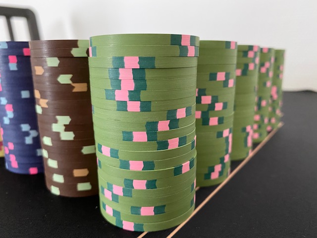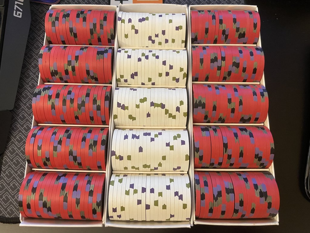 Next, shout out to @TricycleClub for the THC “JS” chips! So, I have red and blue JS chips, look like THC mold but I can only get 19 per barrel, and they do measure slightly thicker than all the other THC I have. Just wonder if anyone has seen this?