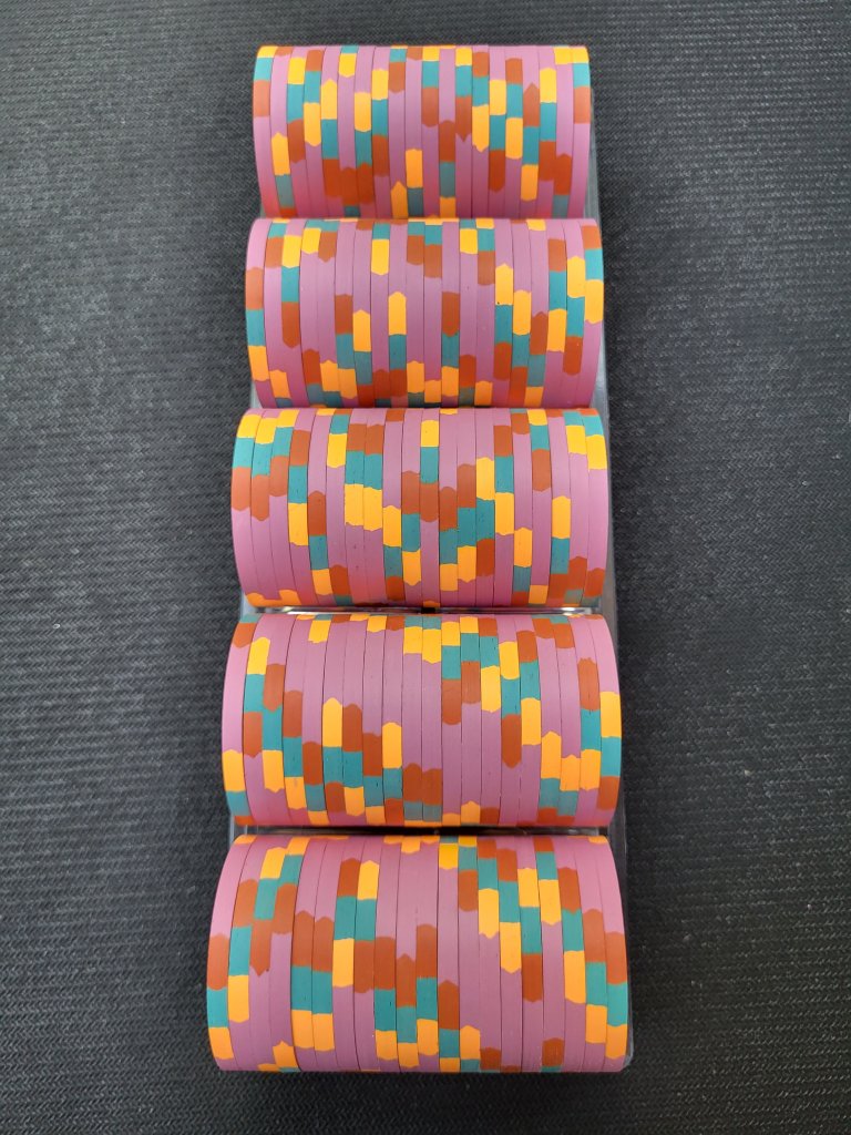 The plan was to make them quarters... but we found the beautiful Blue tri moons, plus built the set to cover 2 tables,so we really needed (200) quarters. Now the yellows will be nickles for a micro single table. I love this line up!