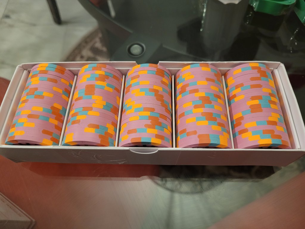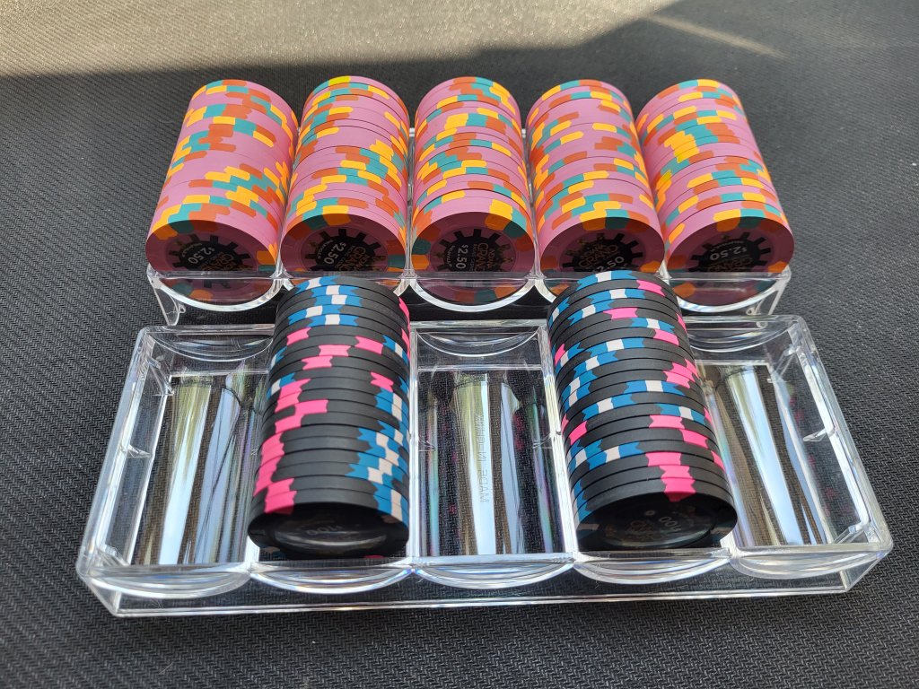 The truth is, I didn’t know which lineup of chips I liked best, so I made sure to order enough of the denoms I need for a cash set and then play around and see what I liked best. In the end, I just really liked the primary lineup with the secondary snappers as fracs. I kept both $1s and will rotate using them in my games.