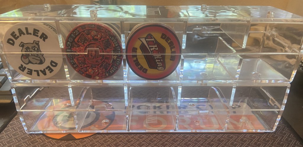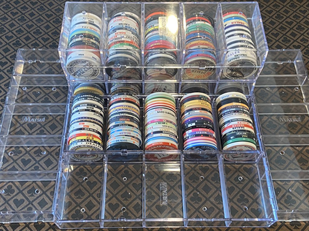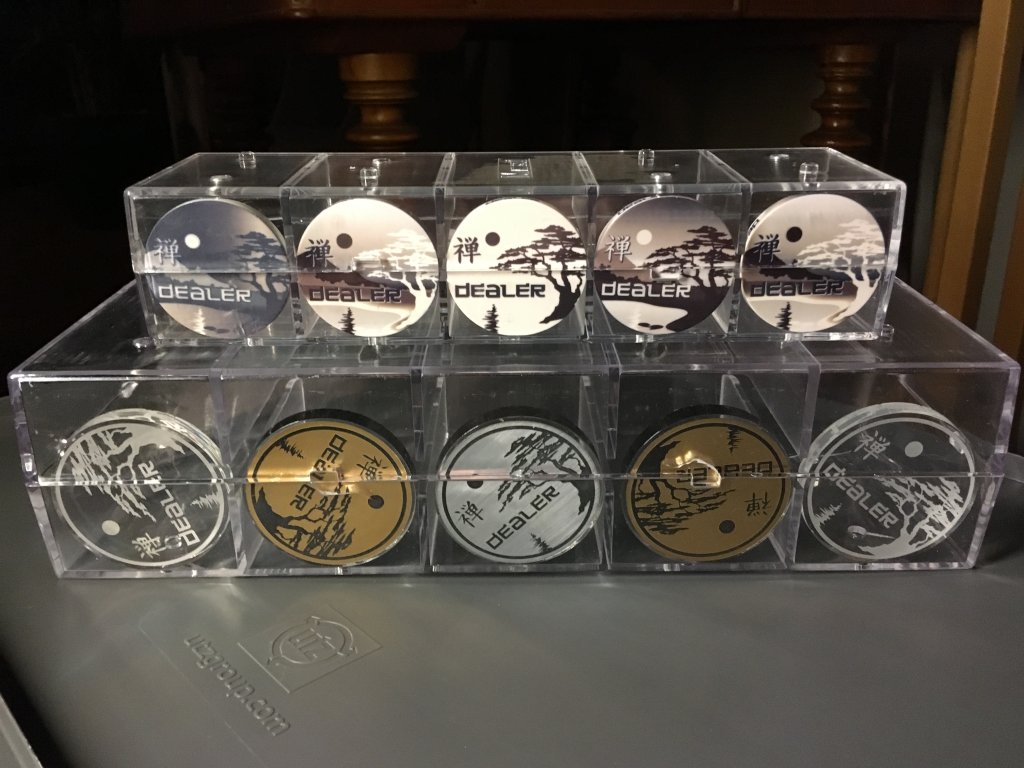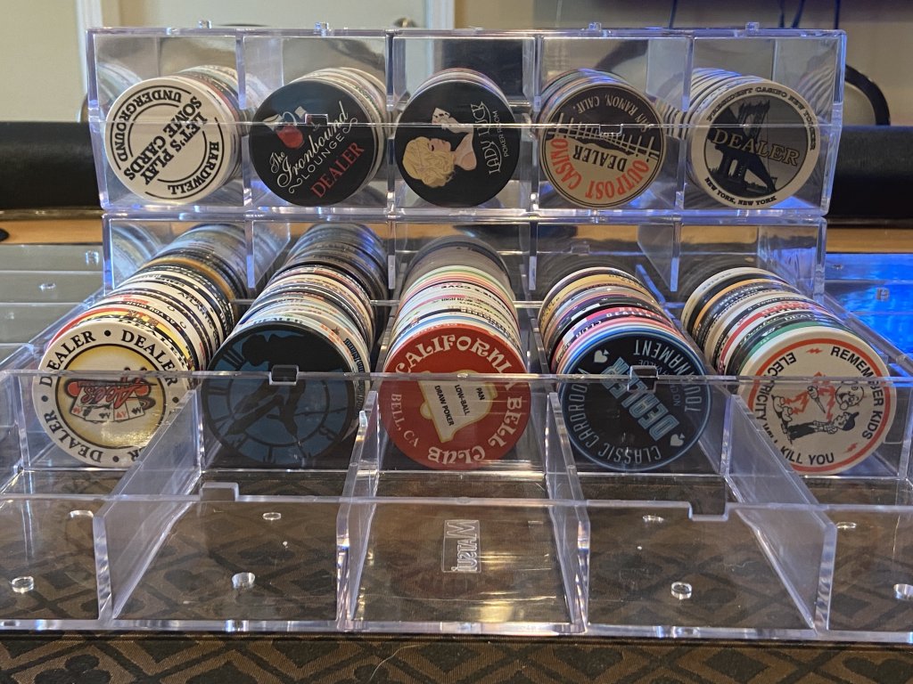 Well, these large Matsui plaque racks are just awesome. Thanks so much @FestiveKnight ! They are so solid, even loaded down with 95 dealer buttons!