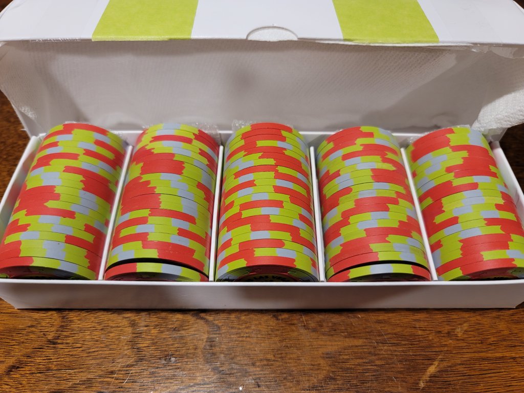 The sticky wrap is glad press and seal I made that mistake one timeWhat is that sticky saran wrap stuff? That is trully the worst! After you unwrap the chips every single chip is sticky! I recently bought a set of chips that was sold as "clean" but I had to re wash and oil every chip because of the sticky saran wrap! Please people do not put that stuff directly on poker chips!