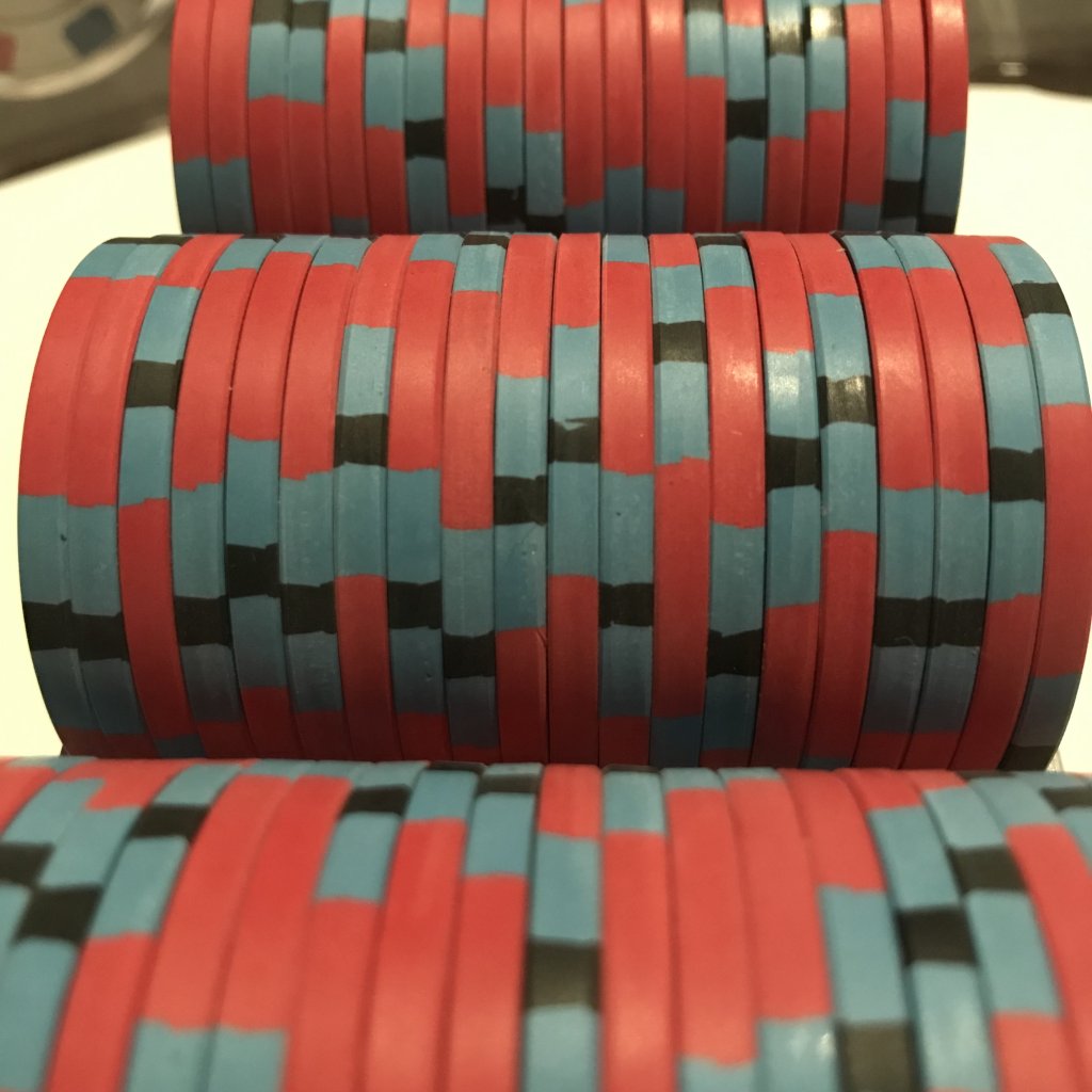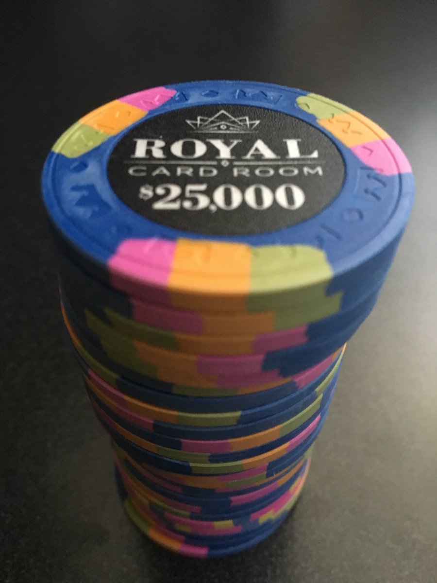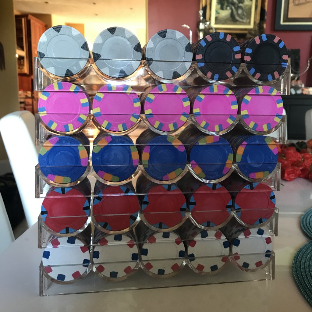 The majority of the chips I have fit in there well. The only exception are the reds which are tight only in the middle slot but still fit.
