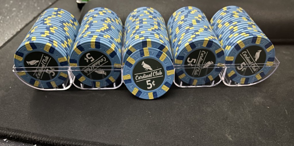 I think it might be time to start building another Tigerhawk Tower. Last time it built one, I had over 1300 chips + 20 plaques with 90 DBs in the middle for stability. My current Royals chip set has over 1800 CC chips + 200 octagon bounty / all in chips + 20 plaques. Maybe I'll start building after my next home game.