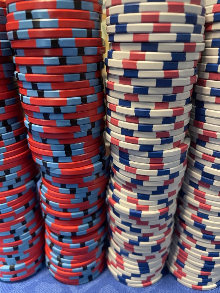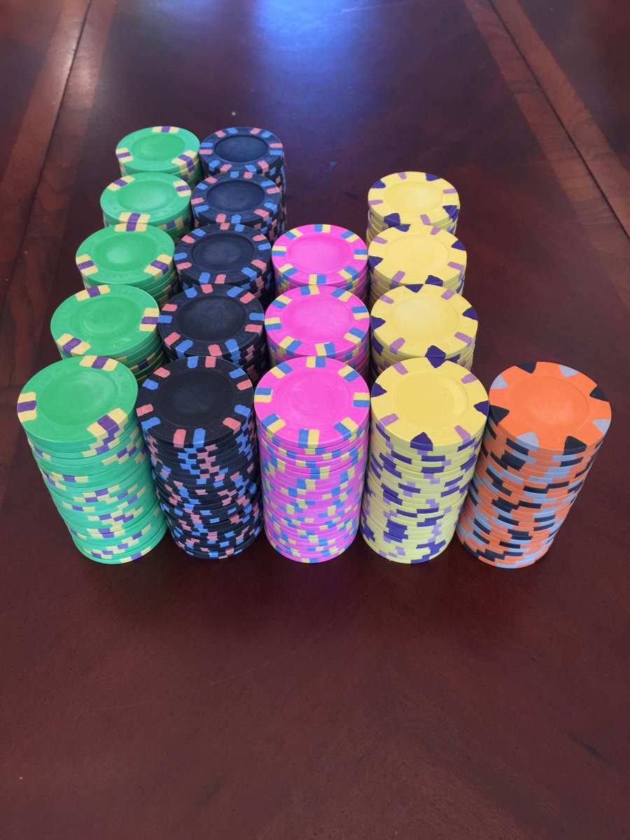 My Royals chips are probably the favorite chips of my group of players. The 43mm size, the bright colors, the custom labels ... they love everything about them. They aren't chippers, though, so they don't know what they don't know. I do have a clay roulette mold set (my personal favorite), but I think the fact that the chips are solids makes my players think that the edge-spotted Royals are superior chips.