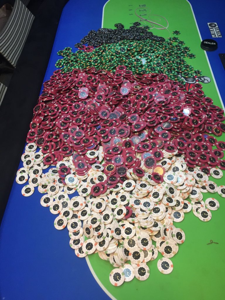 Great job!! Bottom hundo would give you green in all 4 denominations. That gets my vote.Aruba Palm Beach splash with new relabeled $1 chips.