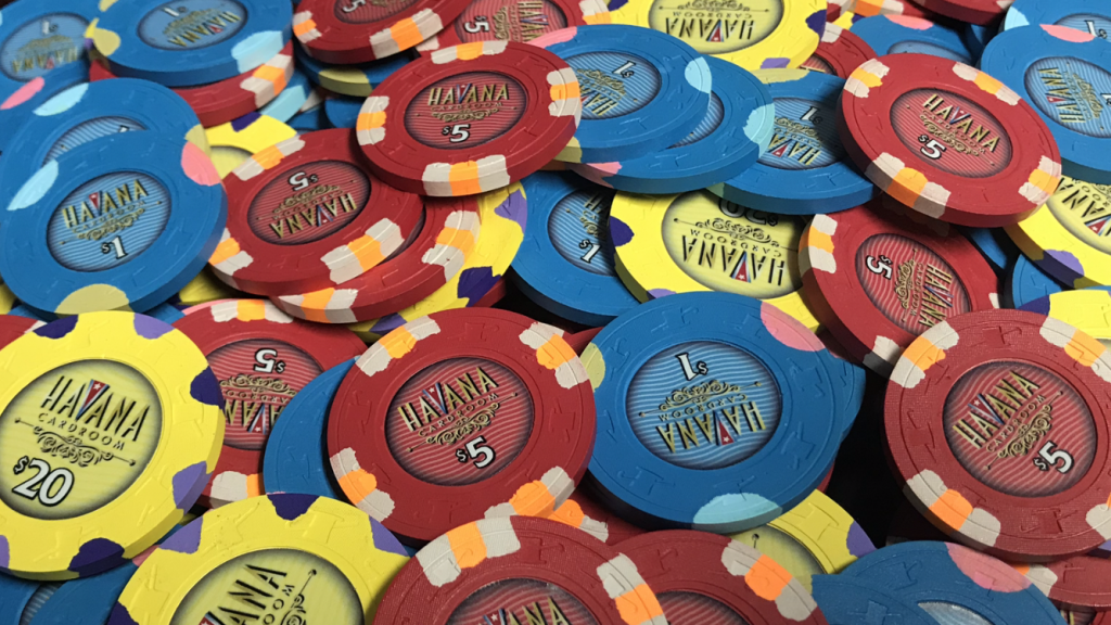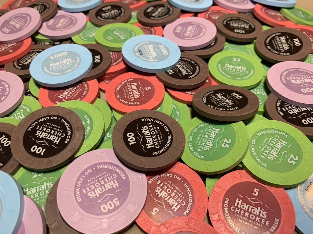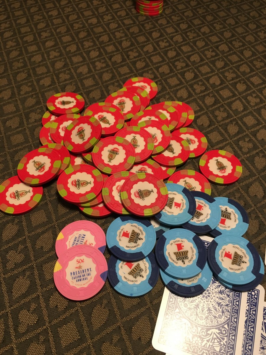 I think this set was a promotional set made when the poker room first opened but for some reason it doesn’t look like they were used. We were told that the 1000 chips were used in dealer schools and maybe some others were also but all look mint.