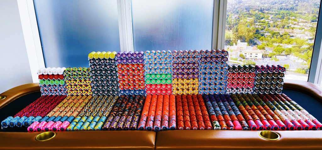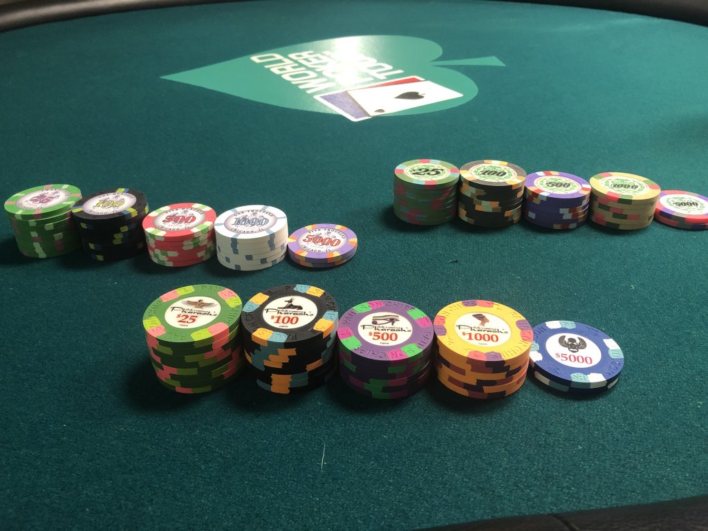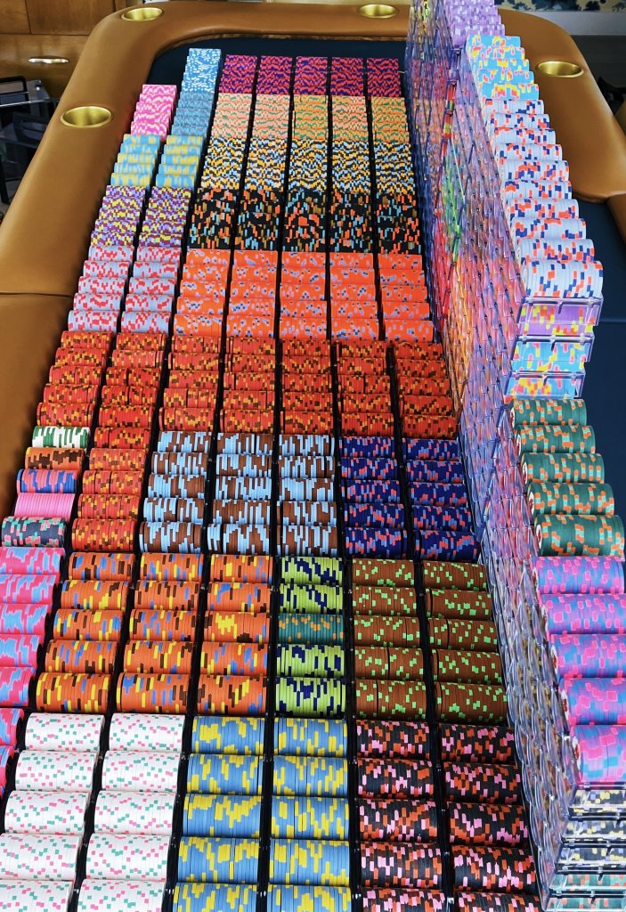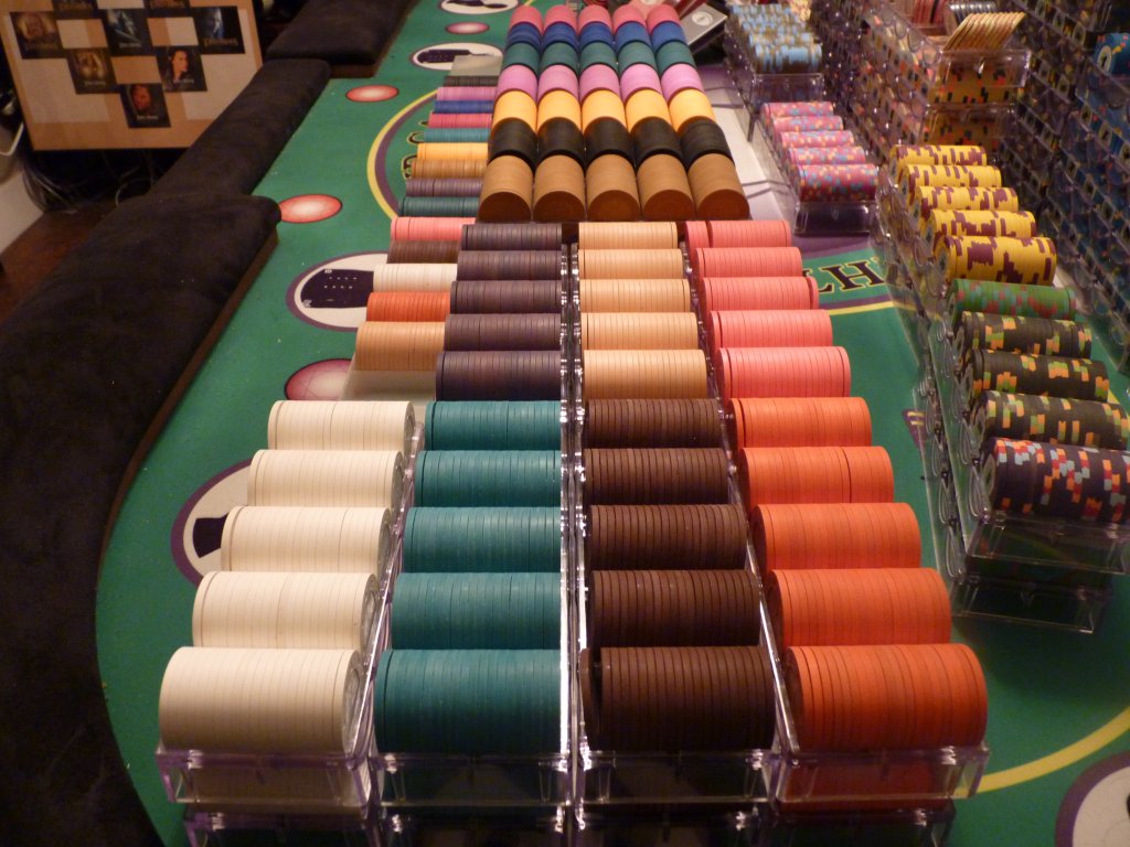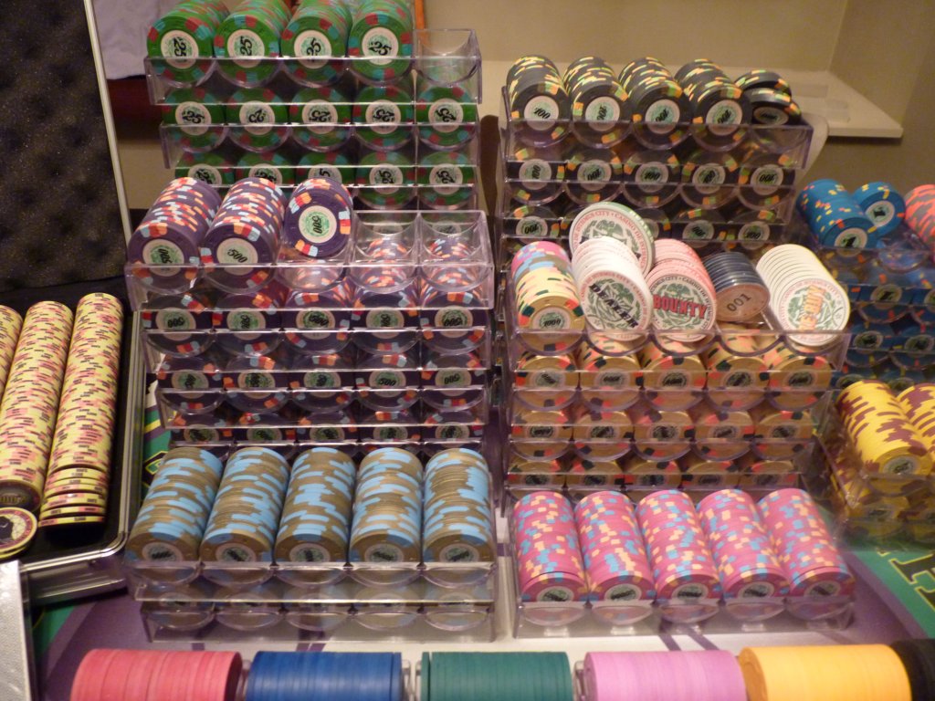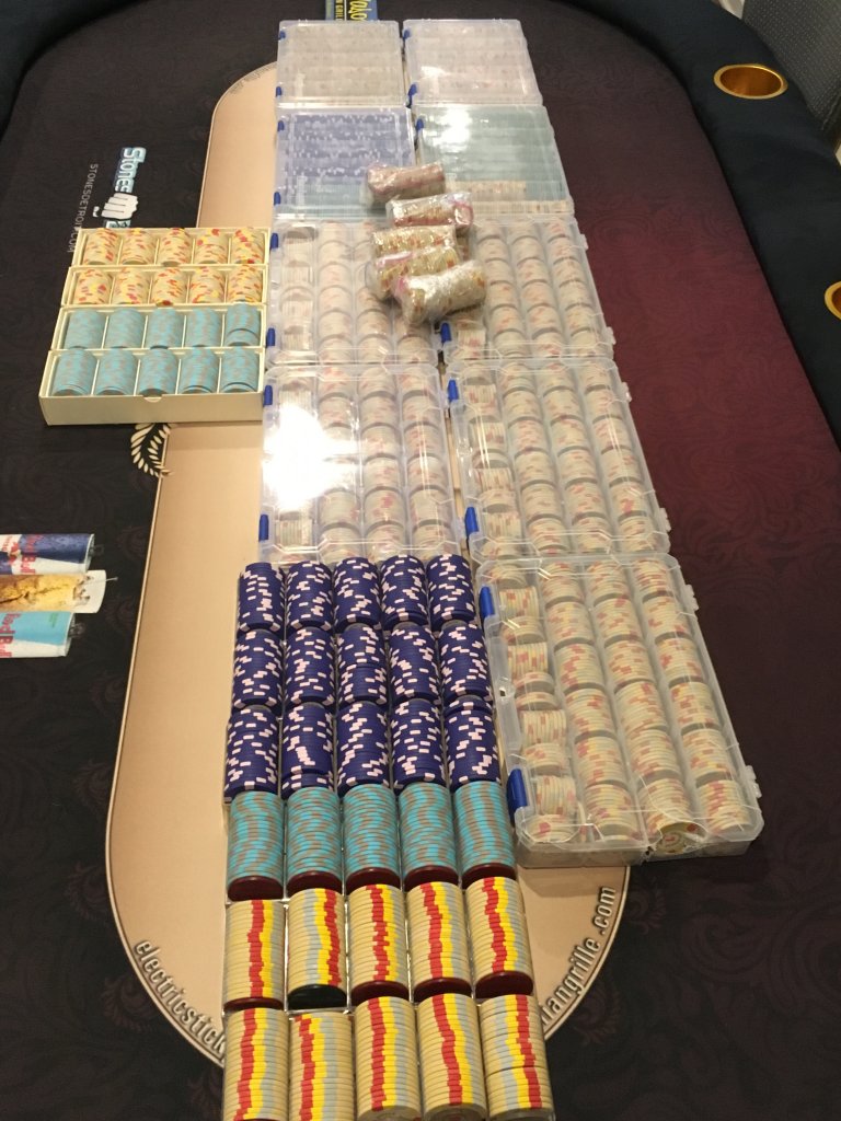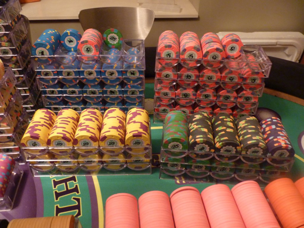 3. The tournament chips. Goal is for 7 tables, T25 base T10K, only about 250-300 chips short. Can also do a few tables of T100 base as well.