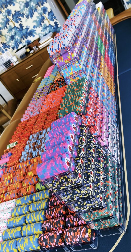 3. The tournament chips. Goal is for 7 tables, T25 base T10K, about 85% there, only about 250-300 chips short. Can also do a few tables of T100 base as well.