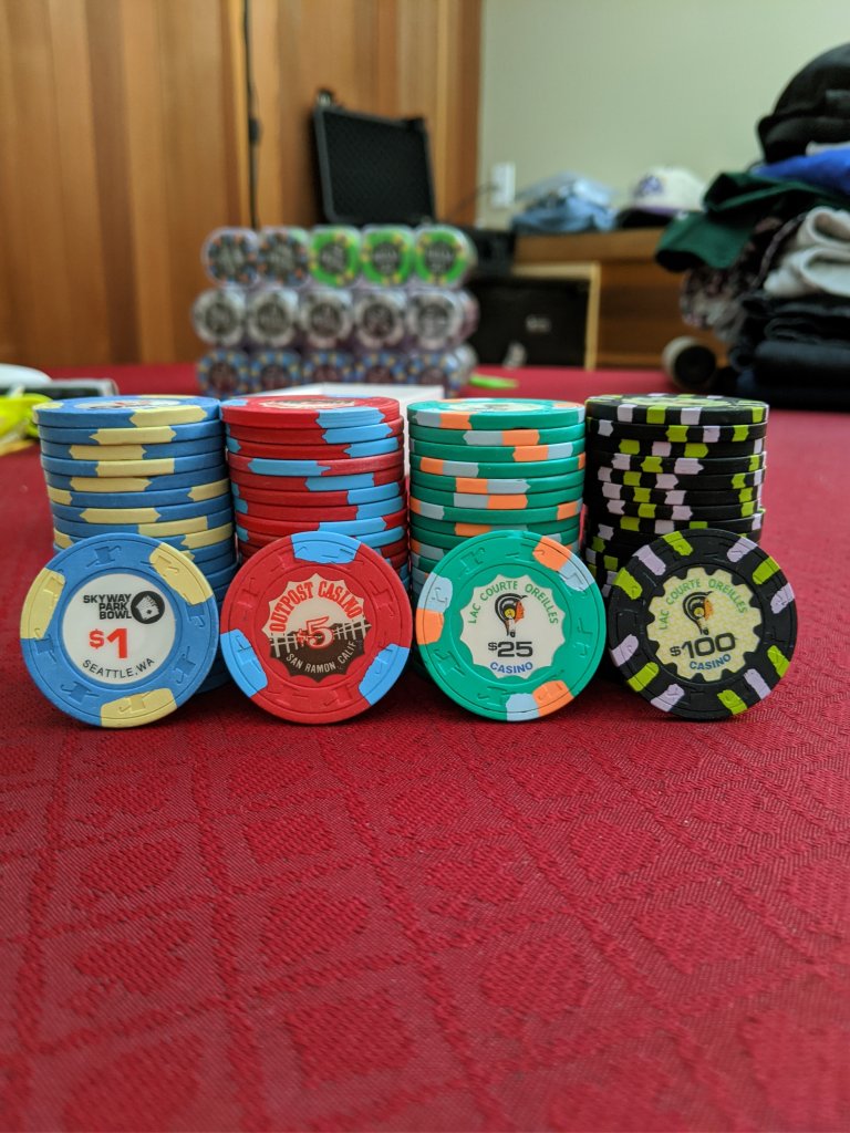 5$ are un mixed of different casino, all housemold of course. 5$ is a good value to di a chip mix : not a lot of chip (as fracs et 1$) , but a good quantity compare to 25$.