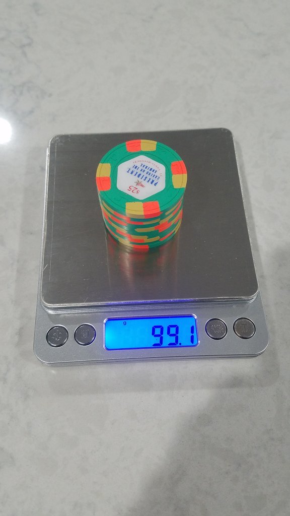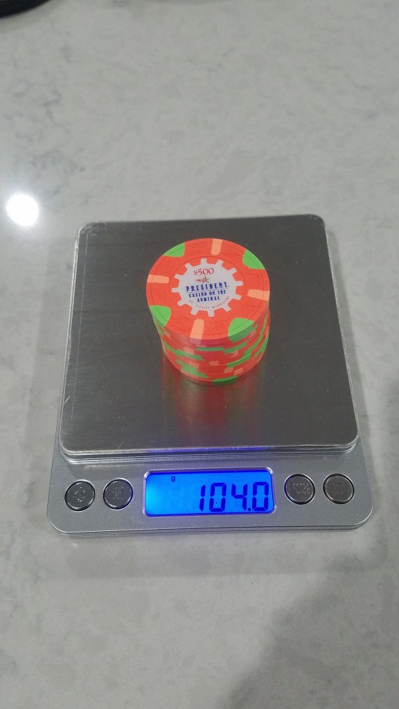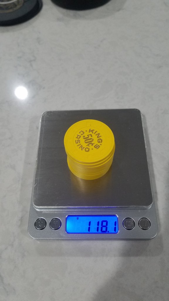 Holy Shit...know wonder people love these .50 cent Kings Casino chips. Just picked some up for my mixed THC set and they are perfect. They are heavy as crap compared to the other THCs.