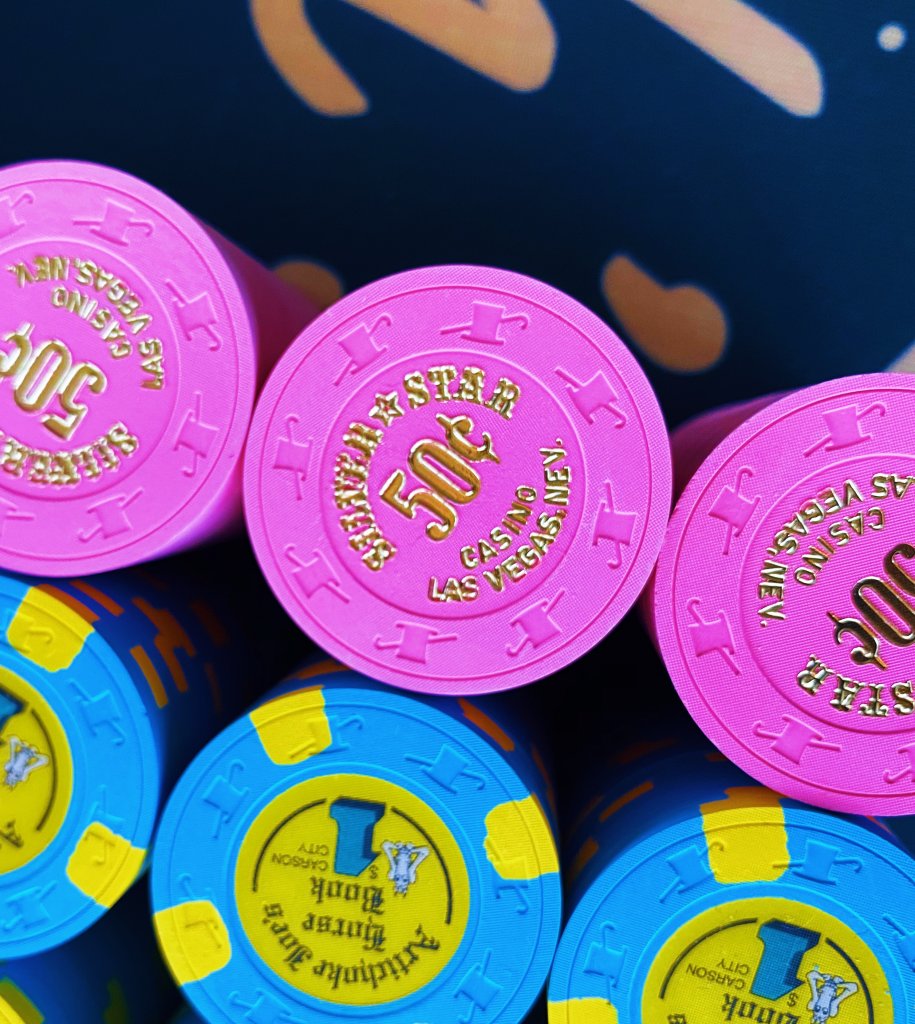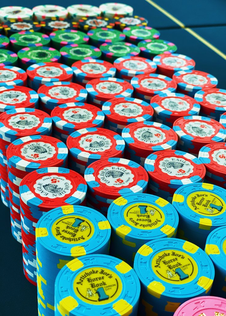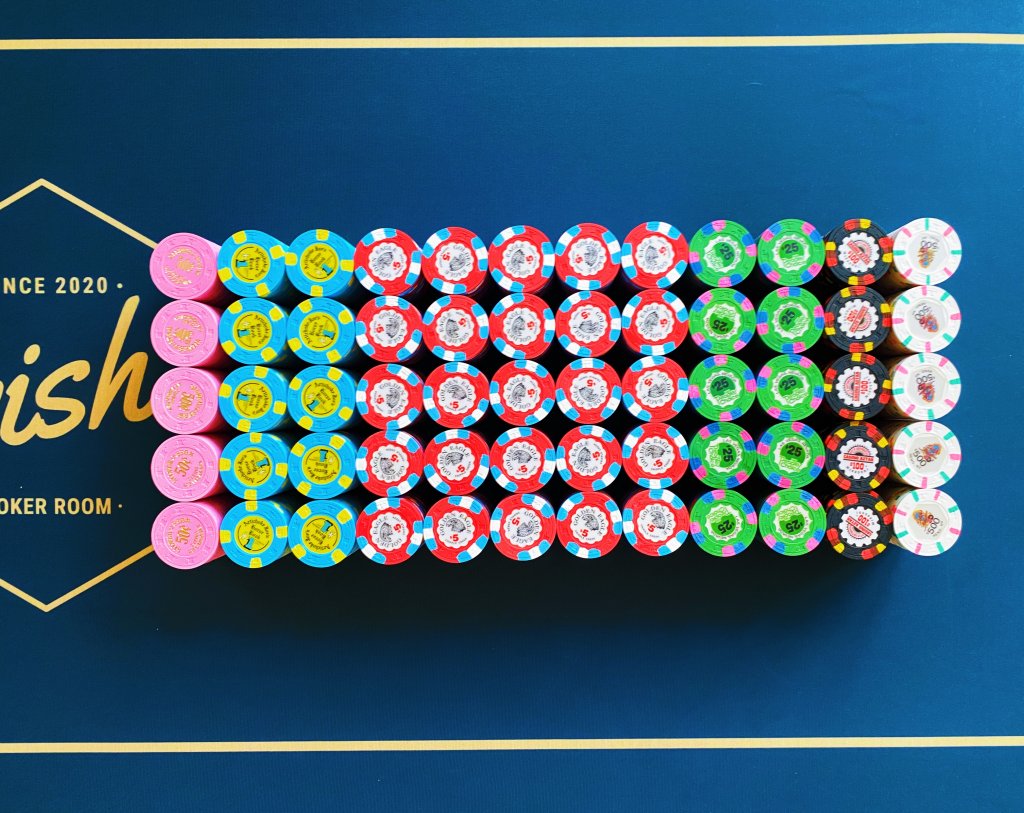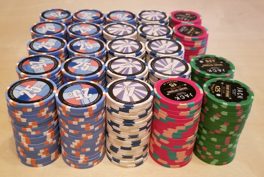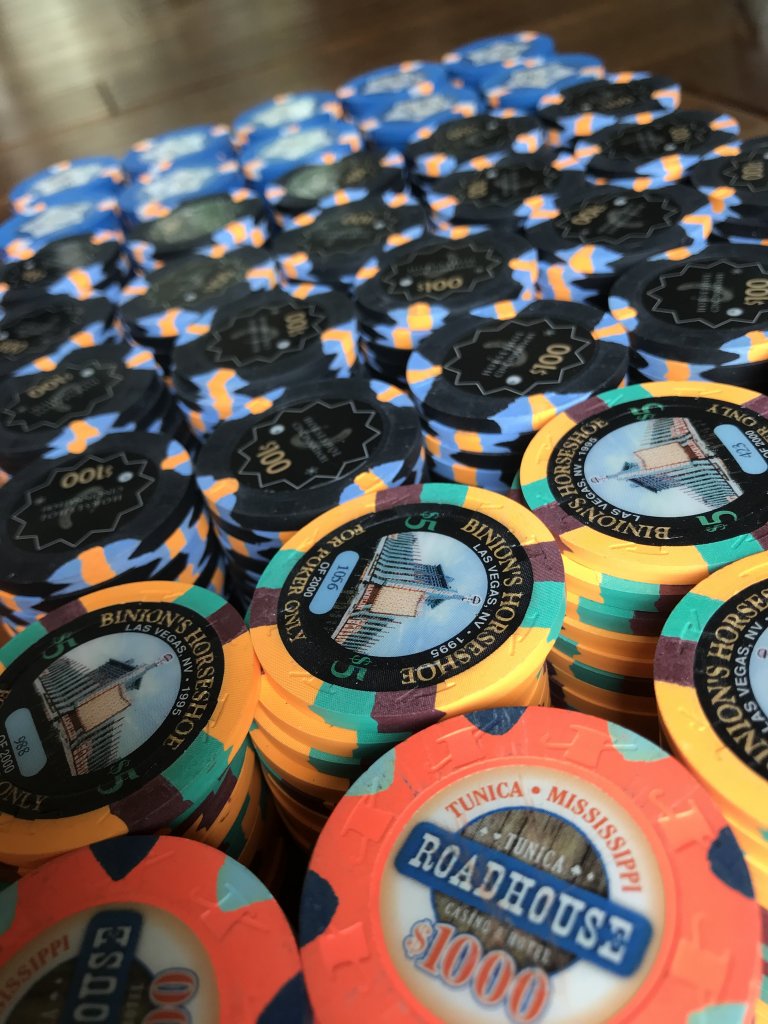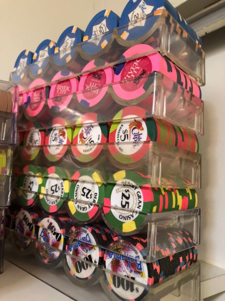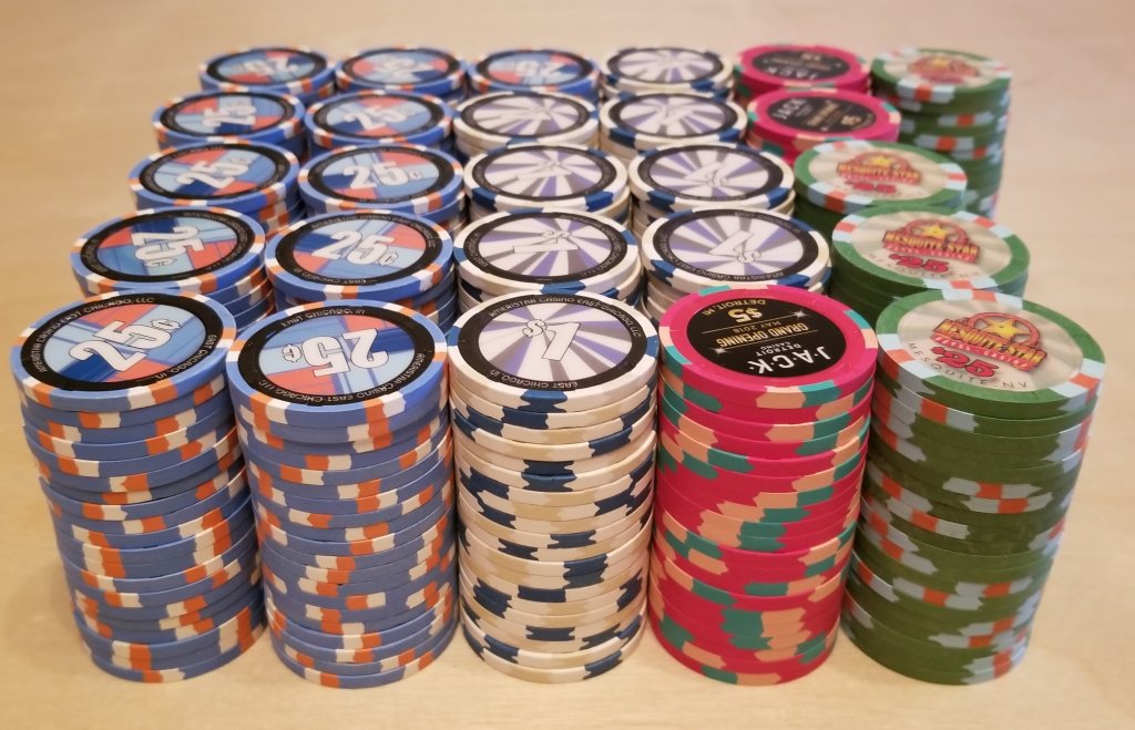 My mixed RHC oversized inlay cash set. I backfill with non-GO Jack $5s if needed. Have alternate $25s (which rarely would be needed with the size of my cash games).