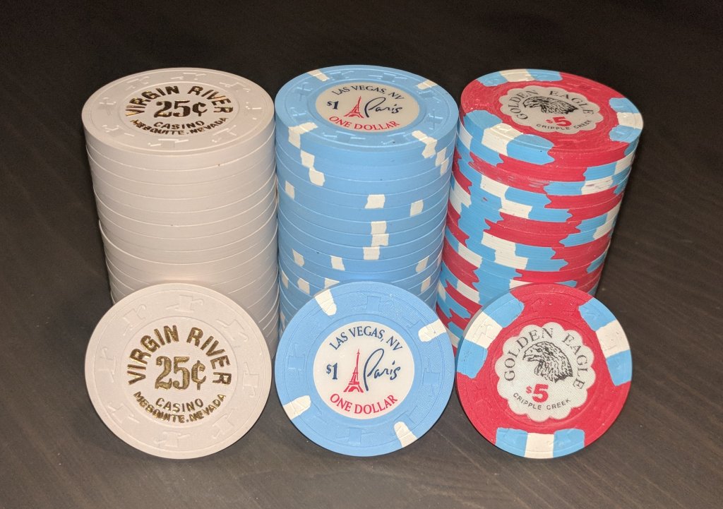 In the current chipping world of clown-fiesta color schemes (which I still love) and blue $1s, top condition leaded shaped-inlay white ones with 414 inserts and a red denom have a beauty in their old-school simplicity. They're absolute bricks too. I'd gladly take back the rack I parted with, but they did go to a good home. It's a chip that just checks all of the boxes for me, especially next to some of my other favorites.