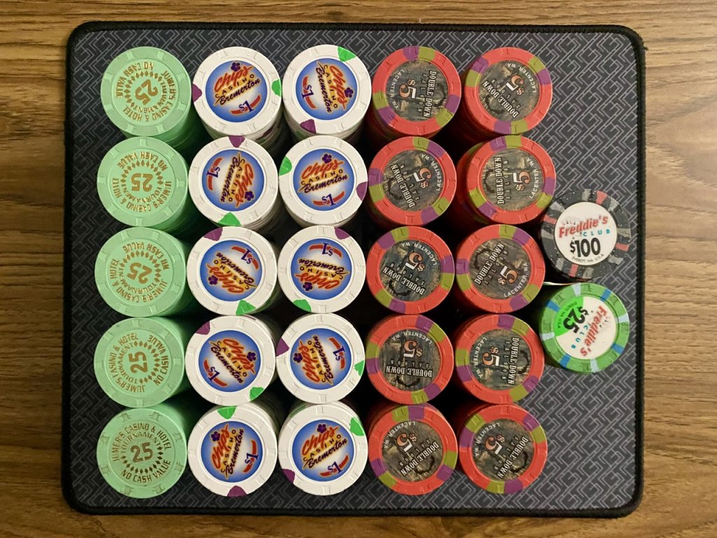 I totally recognize some of those chips… I play my Jumers hot stamps with the rest of my Freddie’s. I have three other barrels of Paulsons to round out the rack. Looking for a barrel of THC $20’s (just missed those Presidents).