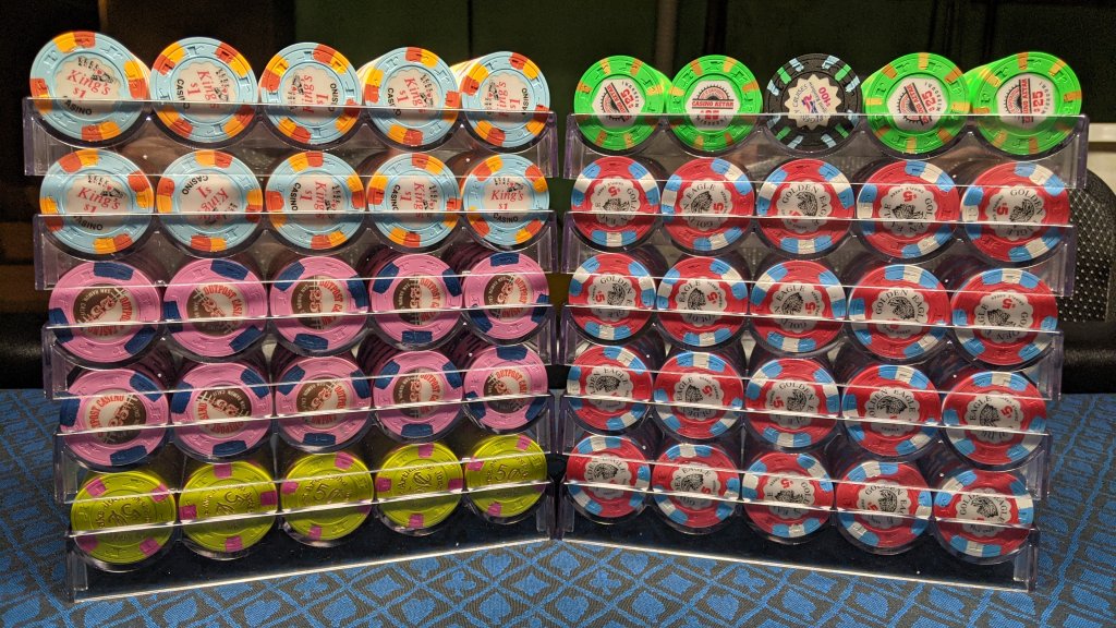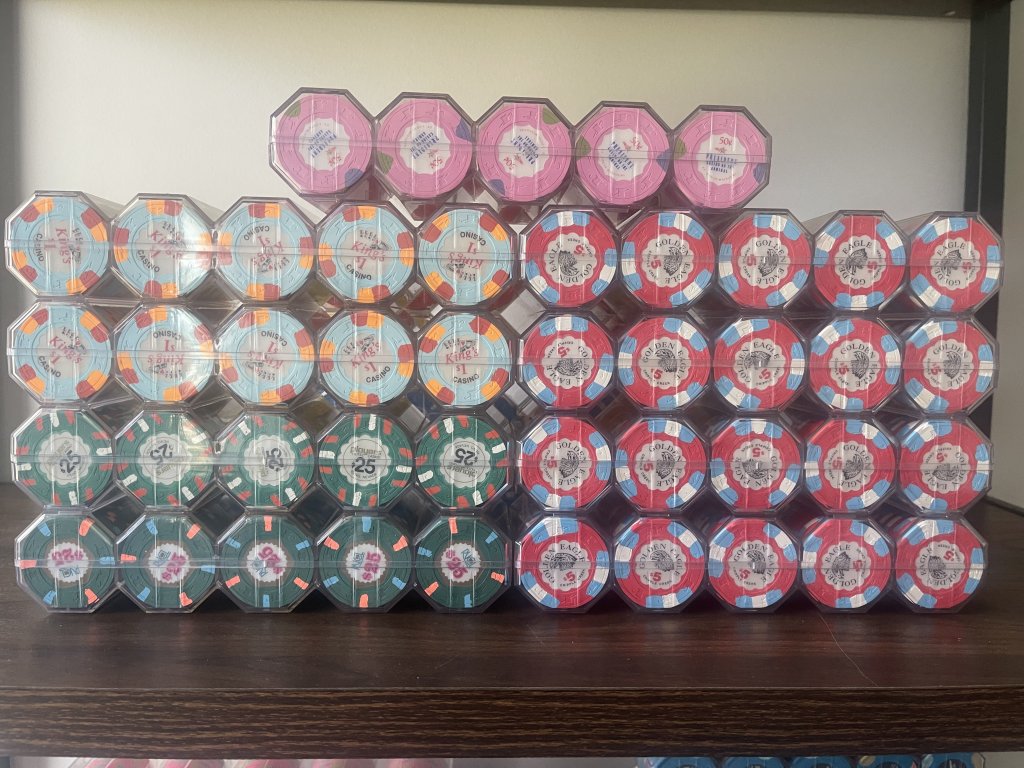 Started with a random beautiful green rack I just couldn't resist and quickly snowballed into an all-leaded redish denom Nevada set. Besides lead/denoms, the goal was to keep it old school af, which I think was accomplished. Really like the red-yellow-black on the one through twenty-five's inlays too. Thanks to all who helped!