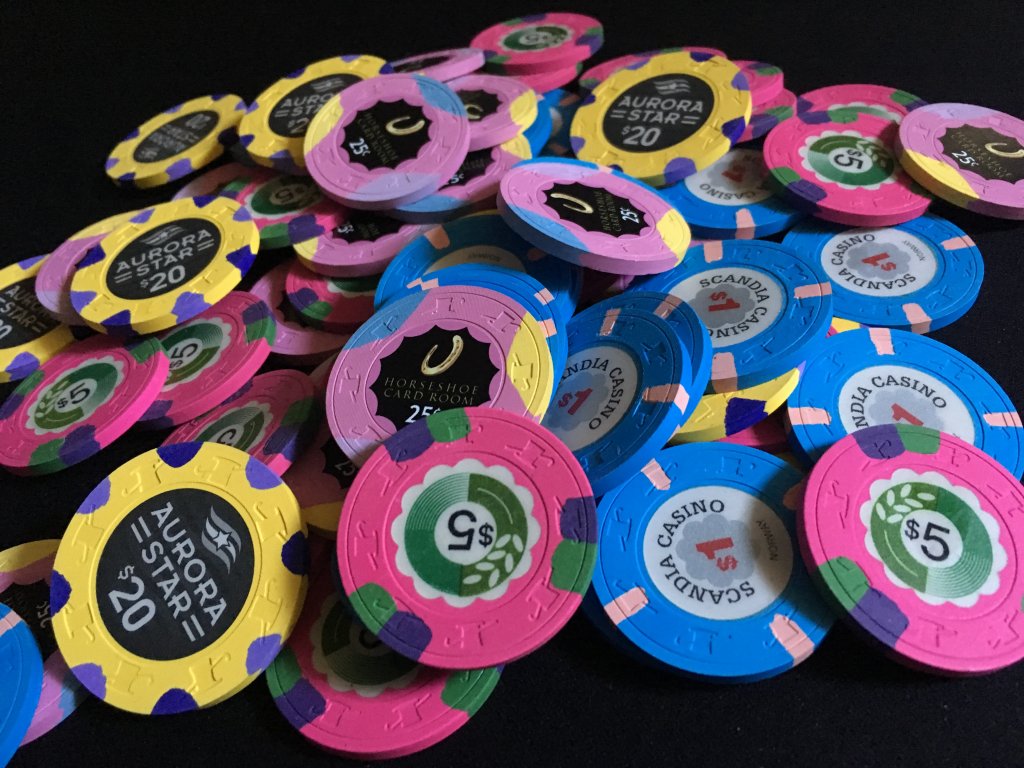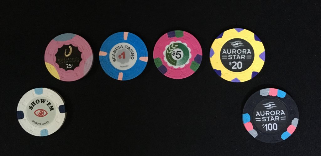 I guess I never updated my set here. Not much of a theme. All old leaded Paulsons with red denominations? Funny thing is that when I pulled the trigger on the San Bruno $1’s to replace the Terribles, primarily because they were THC’s, my first thought was “Crap, these have red denoms, how will they fit in with the rest of my set?” Then I took a look and realized my $5’s and $20’s had red demons too. Ha! How hadn’t I noticed that before?
