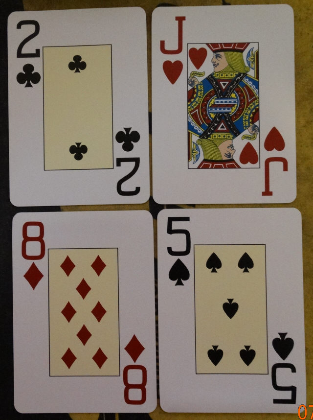 First off, these are obviously meant for casino use. While the backs of all the "working" cards of the deck have the casino's brand on the backs, The backs of not just the promo/info cards, but even BOTH of the jokers, have the backs split in two & sporting both the casino & Cartamundi's logos. So playing any game that requires use of the jokers is impossible.