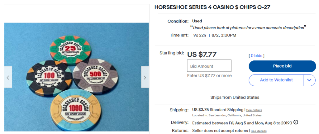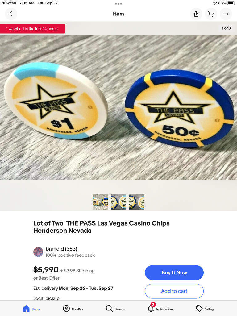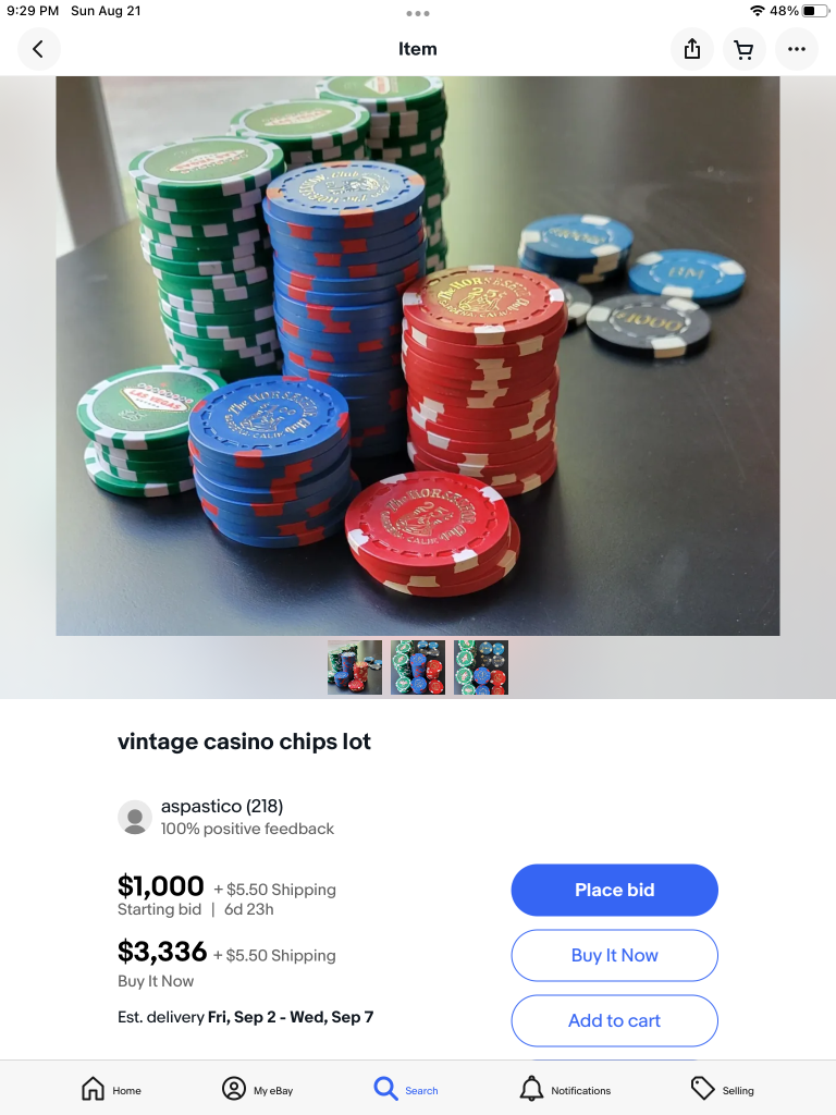 Yes. Another thing I’ve noticed is sellers listing chips for hugely inflated prices, but then accepting a reasonable offer. It might be an effective end-around to getting lowballed?At the same time, there are definitely racks here that go for a thousand or two. Especially boat chips. I don't think I've seen IHCs sub-$10/chip in a while. I can see that for eBayers doing google searches who just want to unload and who have no clue what a boat chip is or what IHC means, it's not a stretch to think their eyes would light up with dollar signs like Scrooge McDuck.
