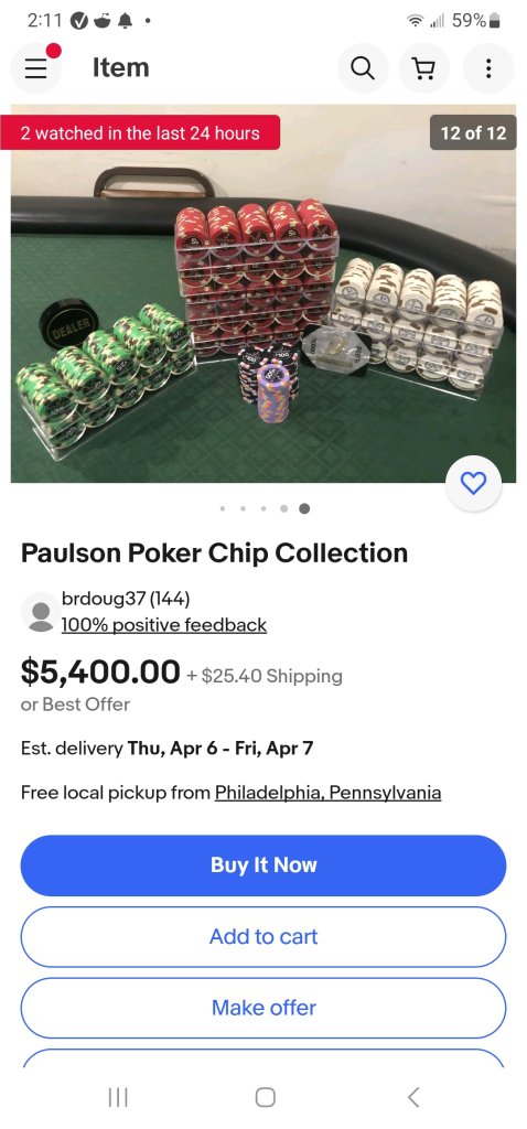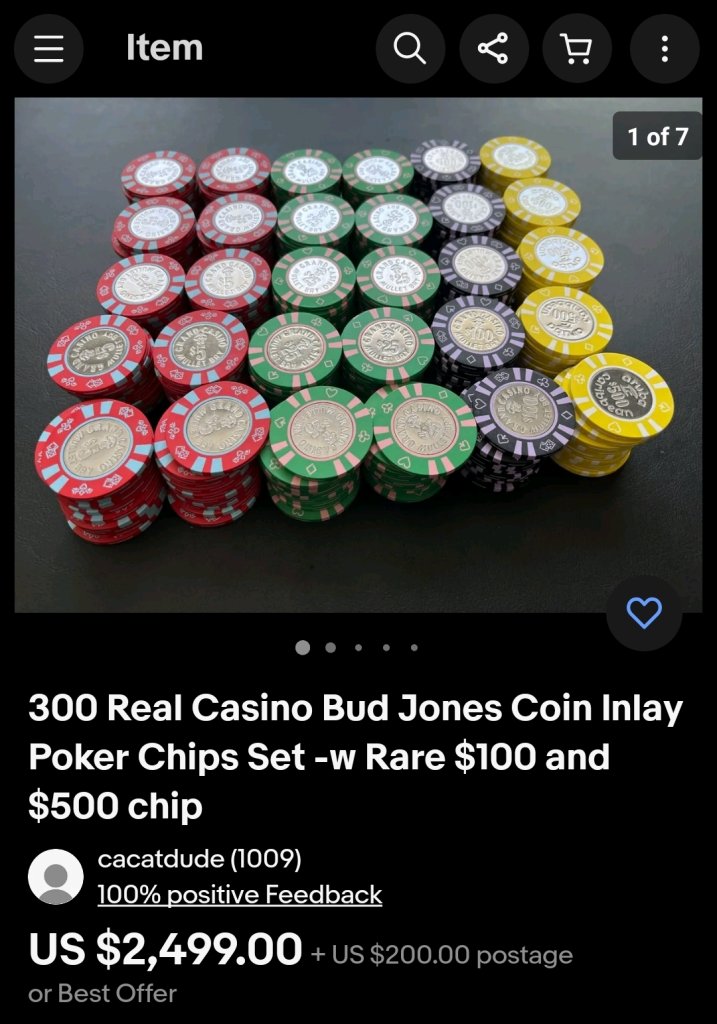 For those of you that have been looking, these are the real deal. As much as I love them, the collectability of these chips has surpassed my desire to keep them. I know I'm going to regret selling them but it is time to let go. Plese understand that my price is FIRM and I do not intend to break the set up.
