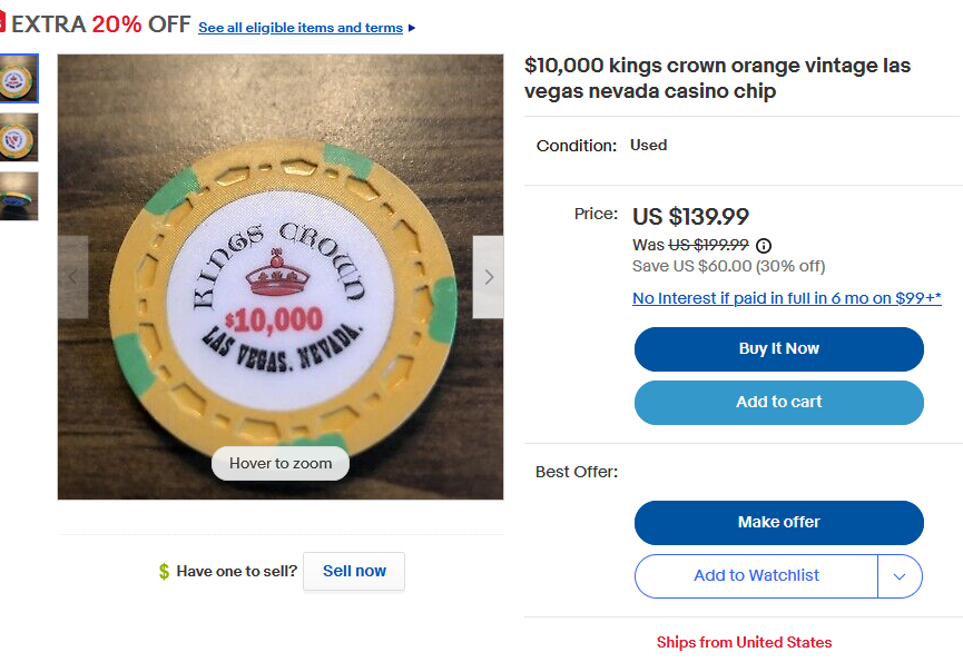 PayPal Credit Program: Buy now Pay over time for one King's Crown $10,000 chip?!?
