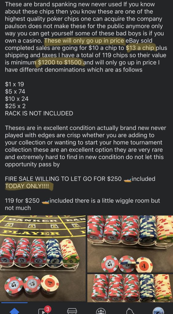 Actually 119 new chip for $250 is a pretty good deal, despite the stupidest write-out that just make the seller look too desperate trying to sell the chips
