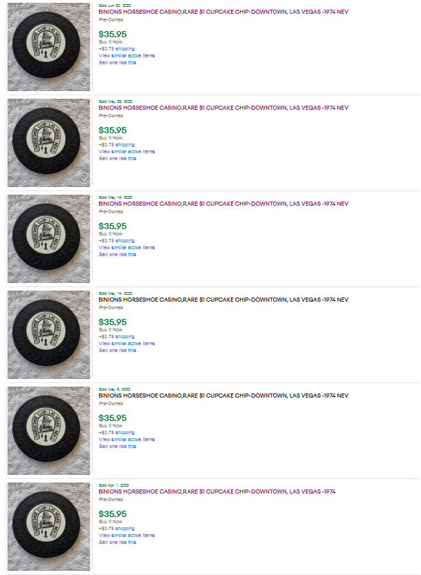 This chip is "rare". The backstory is these were painted black with gold sparkles and presented on top of cupcakes for Benny Binion's 70th birthday. No way a bunch of them exist. How many cupcakes did they have? How many did they paint? They spray painted the existing $1 chips at the time.