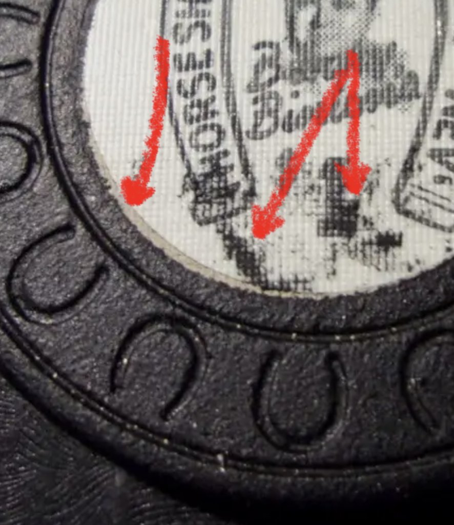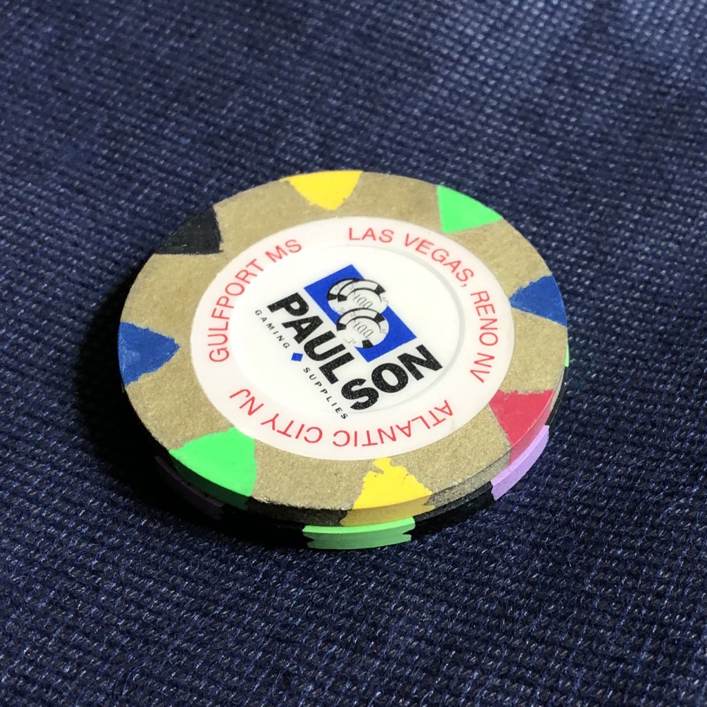 I'd want evidence of errant cake icing on the chip. At least include a party hat or balloons.Interesting. Here’s one devonrexcatlady has listed for sale. Seems like there’s a line of light grey clay (which seems to have crosshatching) between the “black clay” (no crosshatching) and inlay. Add to that the black smears on the inlay (from the paint/spray job?) and the funny look of the “black clay” itself and you’ve got one peculiar chip. Key is, how do you know the difference from one that was painted for a 70th birthday party and one that was painted to sell for more $?