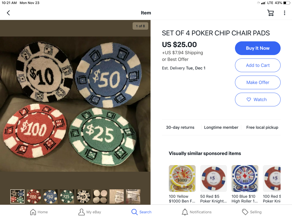 If these things sell today.. all I can hope is that it is for a gag gift!! I would absolutely love to see the look on @Windwalker face opening this as a gift!! Sorry Krish didn’t mean to bring you into this... but you have to admit, there is no way you could hide the disgust of how terrible these are!!!Hands off, those chair pads are ALL MINE!![]()