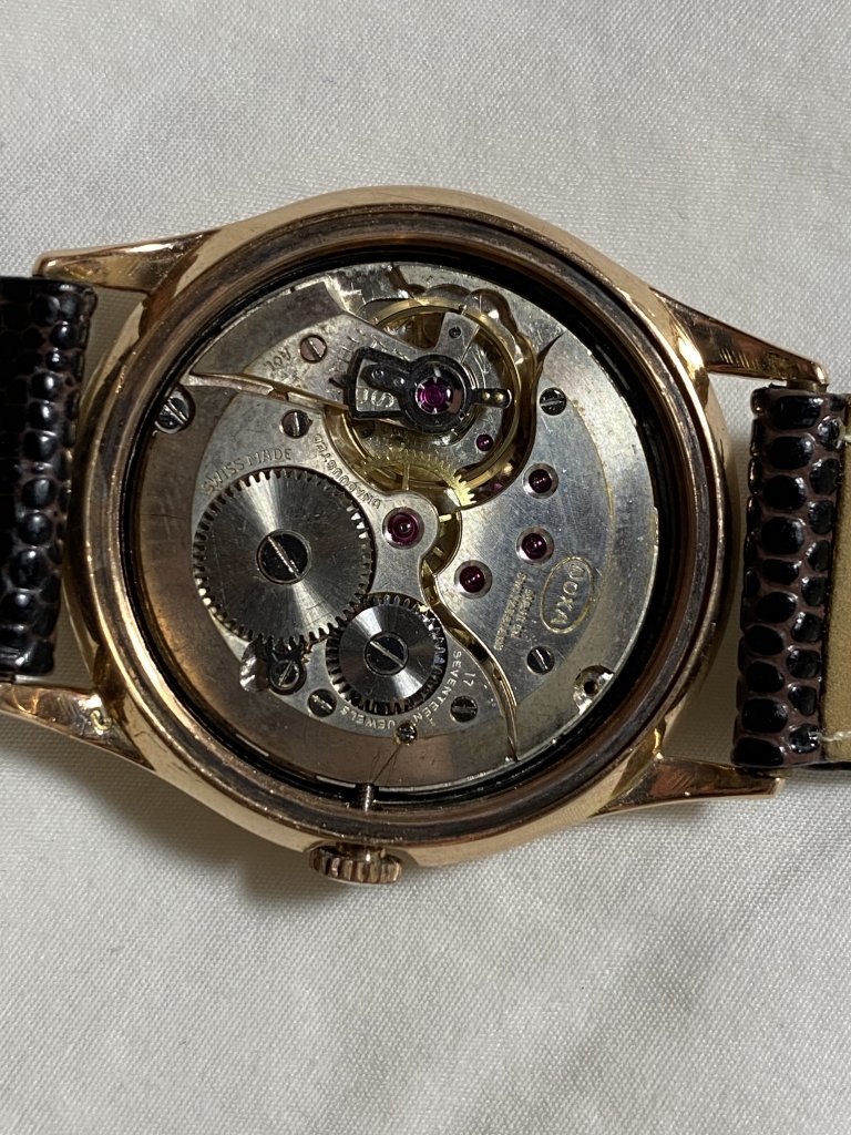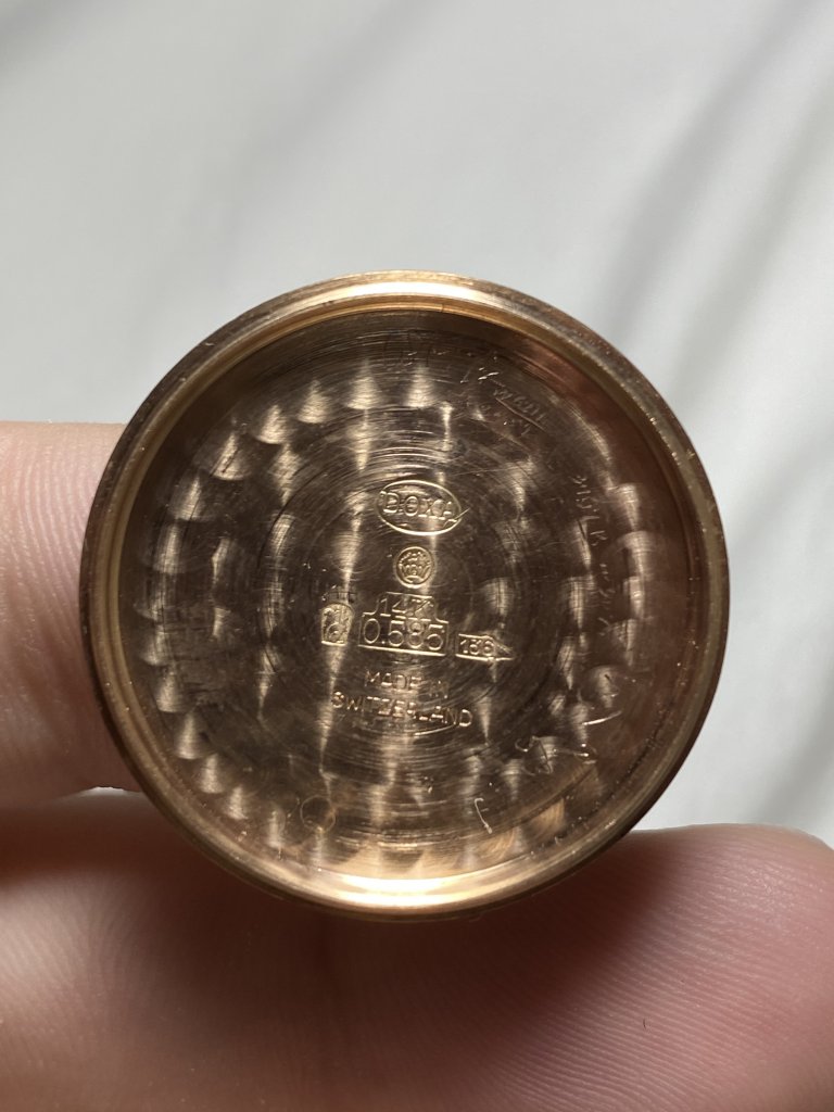 Got this for a steal—relatively clean movement and 14k (unfortunately polishes) Spillman case. I say “German Army-style” because while the dial and movement are certainly appropriate, the case is in 14k rose gold and isn’t marked with a DH serial. I haven’t been able to find other confirmed DH watches in 14k—so either my watch was made privately for some rich conscripted office worker, or it was re-cased at some point (I’ve read that Nazis did that at times to try to shed the image).