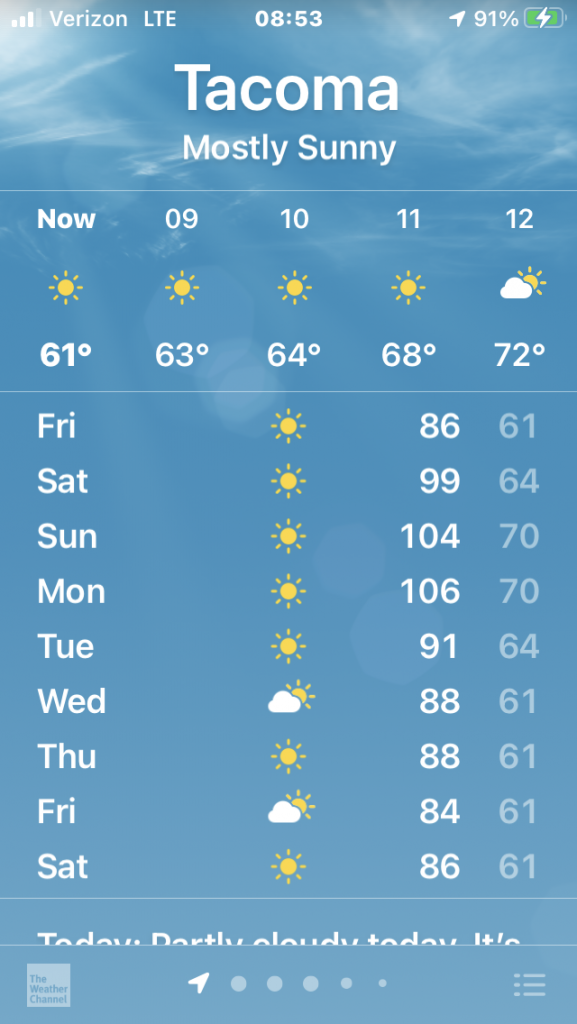 We rarely get more than a couple days in the low 90s. We are not going to handle this well. Might have to head for the coast this weekend.