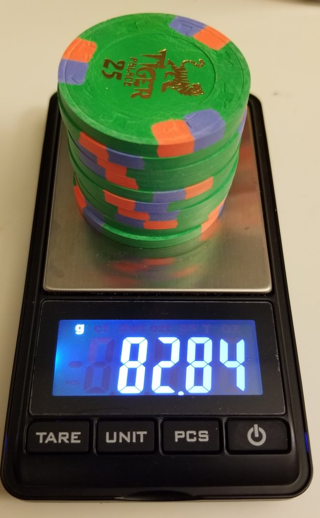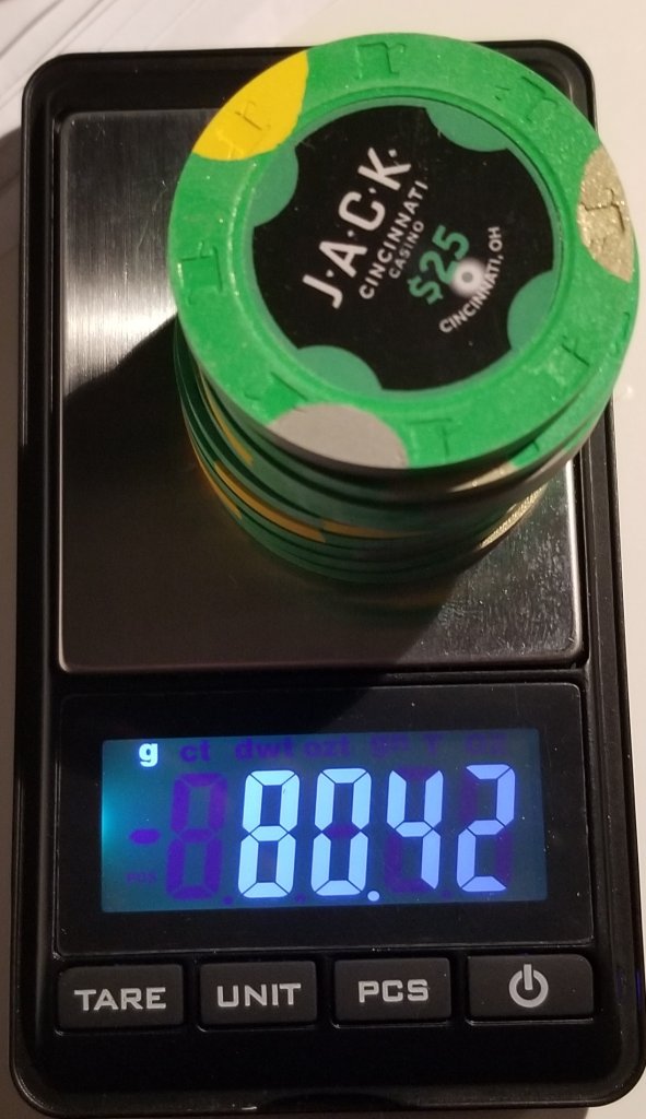 Sometimes this hobby is just about finding a use for the chips that nobody else wants. Lots of people don’t want mixed casino sets, mixed house mold sets, much less mixed size sets. Me, I love these chips!