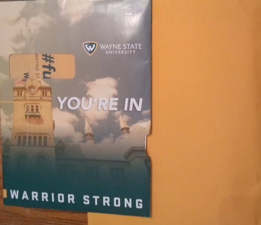 Ace may not end up going to Wayne State...but he's 3-for-3 on applications (Michigan State and UM-Dearborn) with all three offering scholarships.... he's waiting to hear from UChicago before making a decision.