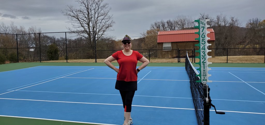 We got our court repaired, resurfaced, and painted for both tennis and pickleball. Today we went out an played a game! Yeah!