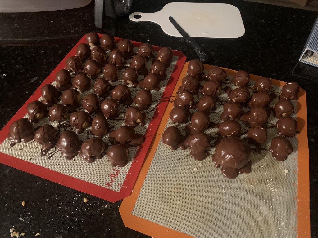 Use a big spoon to drench the chocolate lightly over each ball. Chill overnight.
