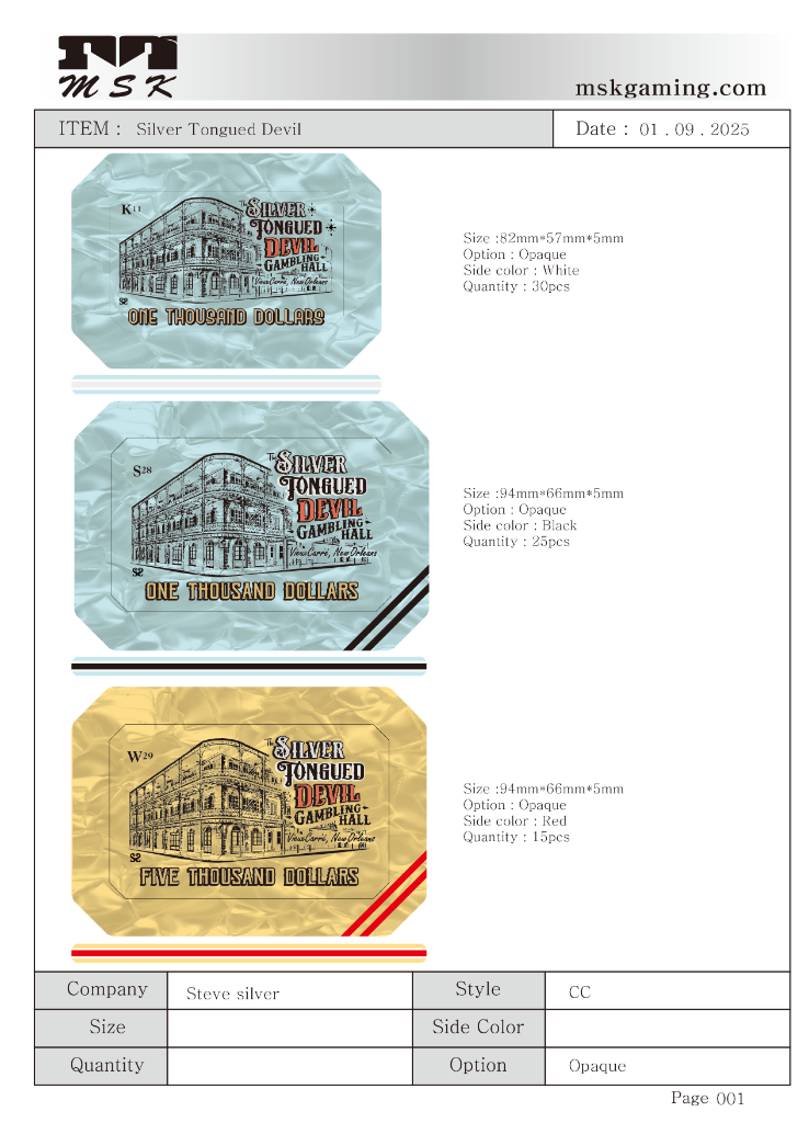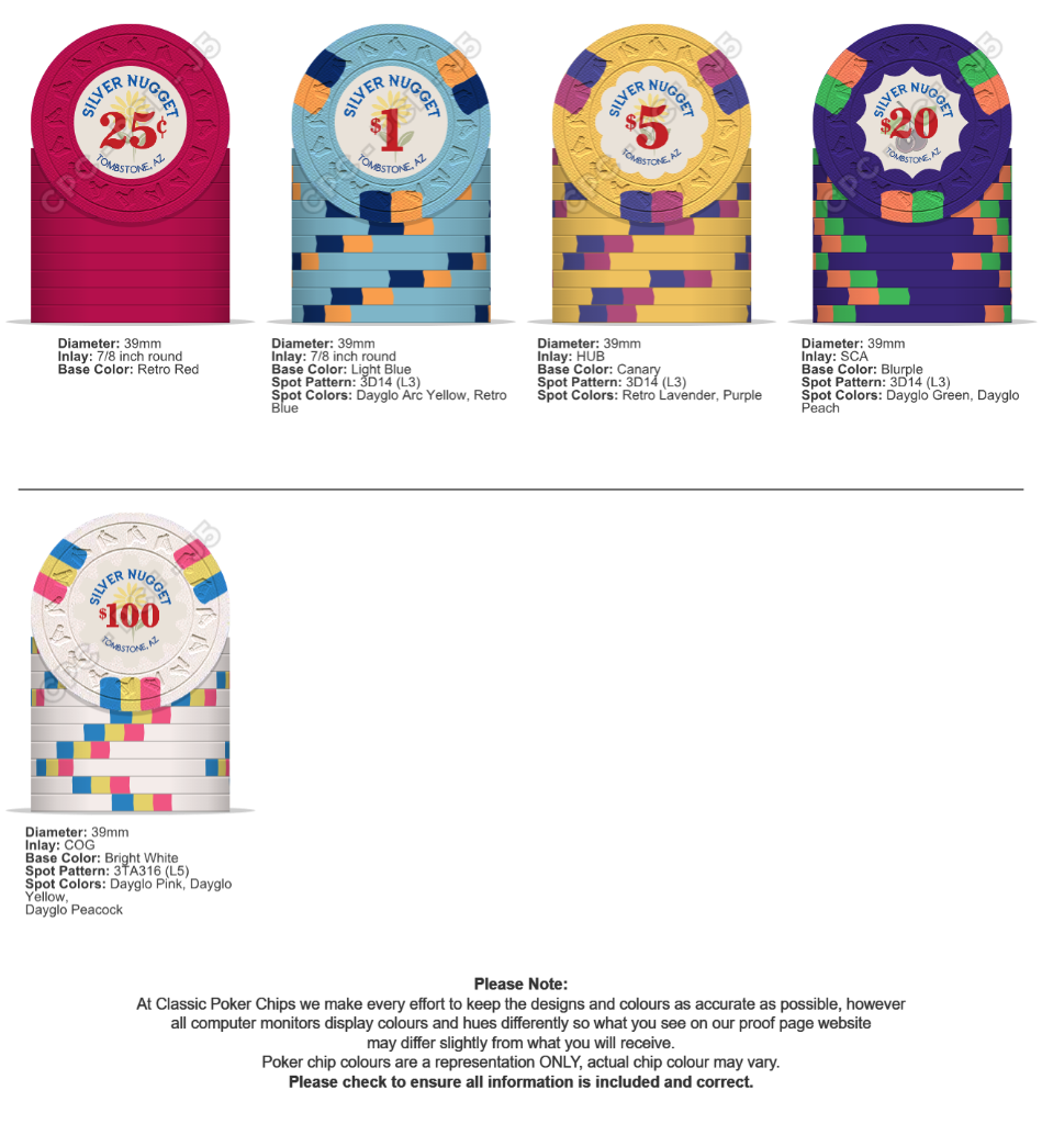 I'll reuse the stamp-die I asked CPC to create for my first CPC order - a tournament set. I'll stamp the chips with my logo on both faces.