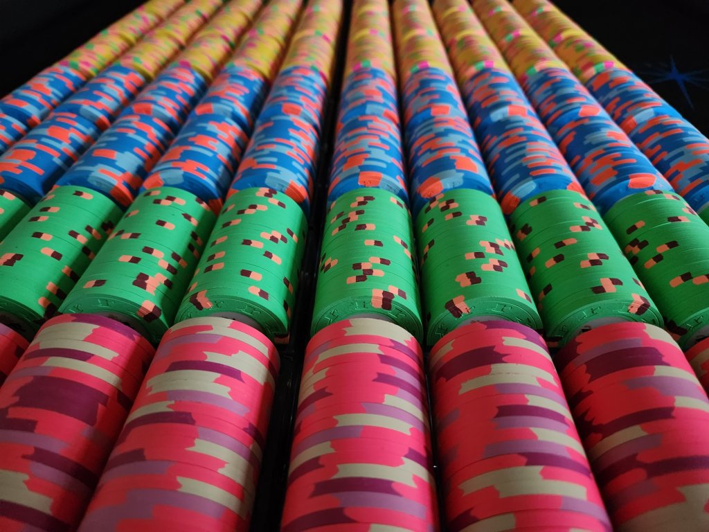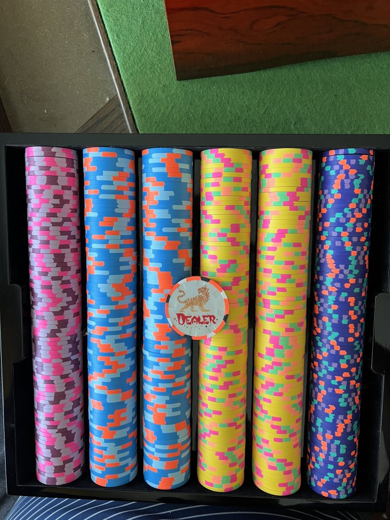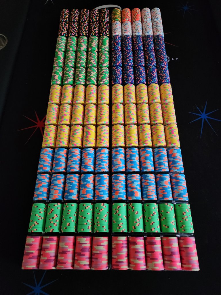 thats ALOT of small blinds! tbh the other issue that is throwing me off is the step down in spots colours. the whole lineup has 3 spots colours except for the '$10'. Having checked out the rest of the TP chips the only alternate choices available IMO would have either been, P$5, S$0.25 or S$500 assuming its not being used in the set.