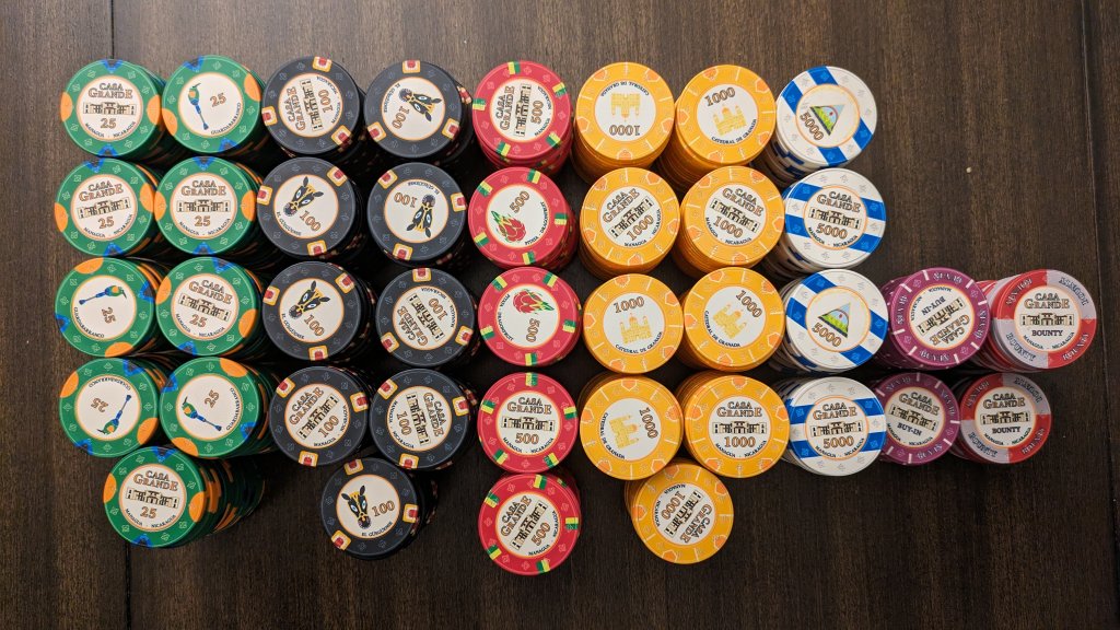 There's something special about a solid color tourney set. Greek mold Mirage tourney (T100 small chip) though I plan on getting more T25's because they look good.
