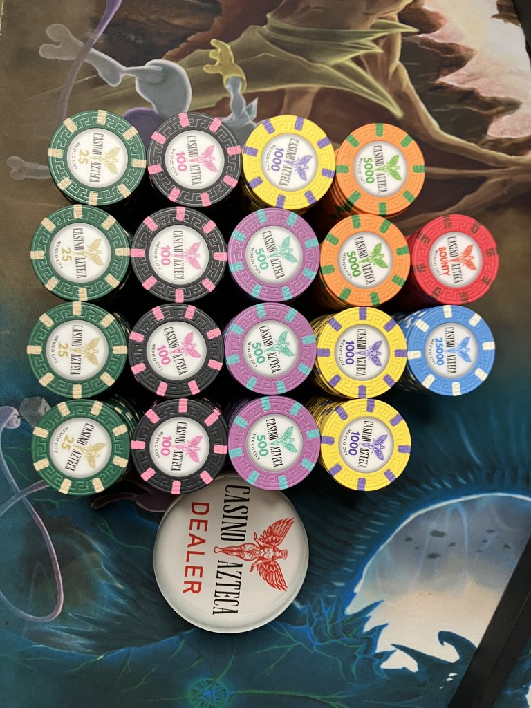 I really like this design. If I was going to grab up any of the ones available, it would probably be these.I came home for lunch, and my Casino Azteca's had been delivered. These look amazing in person!
