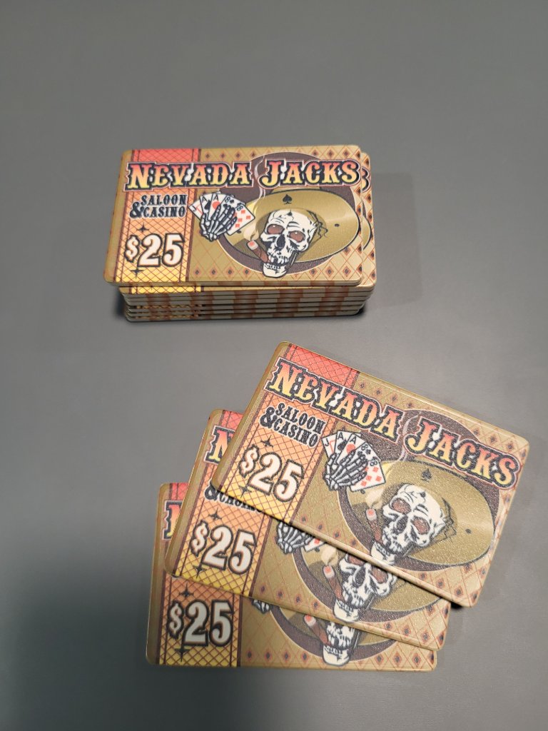 My plan to get my $25 plaques on the table is to have a $100 game, have everyone start with one. Then use them for rebuys as needed.