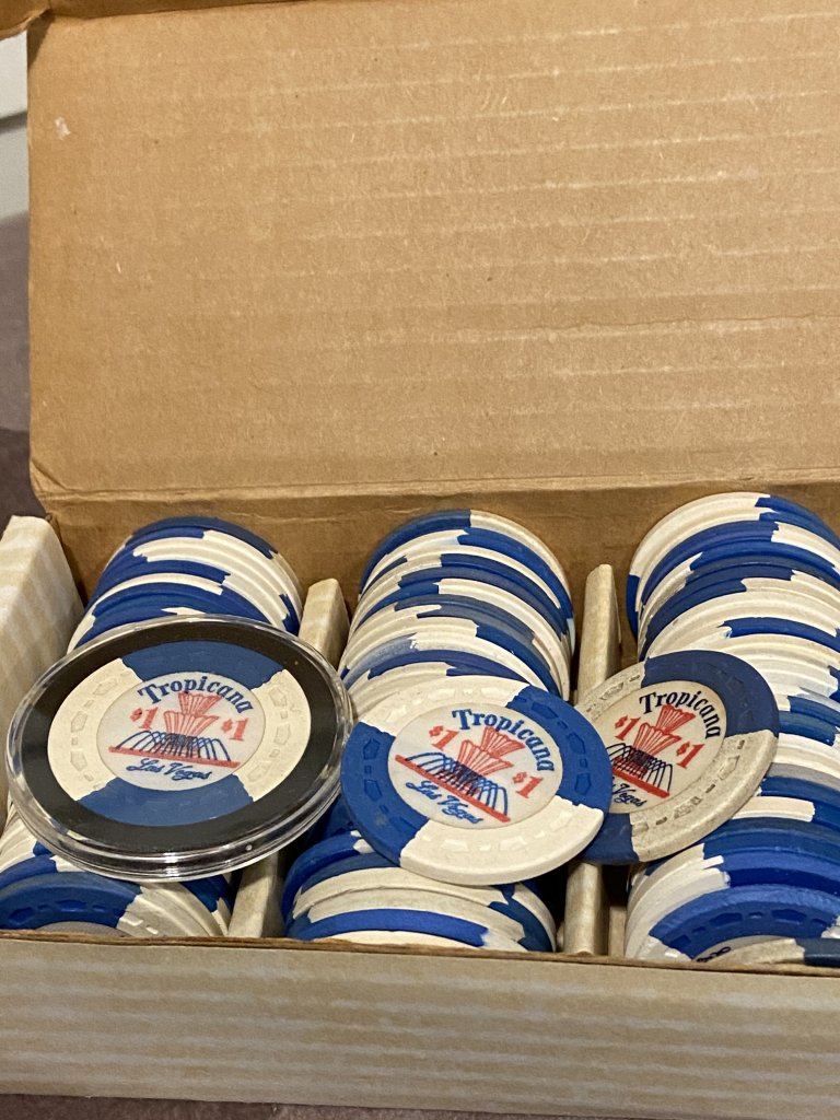 I did not need the $100 chips, as I had acquired 20 in various ways, but I could not resist. In my humble but accurate opinion, the first edition $100 chip is the best looking chip ever made . We negotiated over a two month period to land the rest of the $100 mint chips in my set. To my knowledge, I do not believe that there is a surprise quantity out there of the first edition chips. If I am wrong on that, I will have still had a blast on this treasure hunt. If I am right, I think I may have one of the more rare sets around. Thanks for reading and please read up on the great history of the Tropicana with the links below.