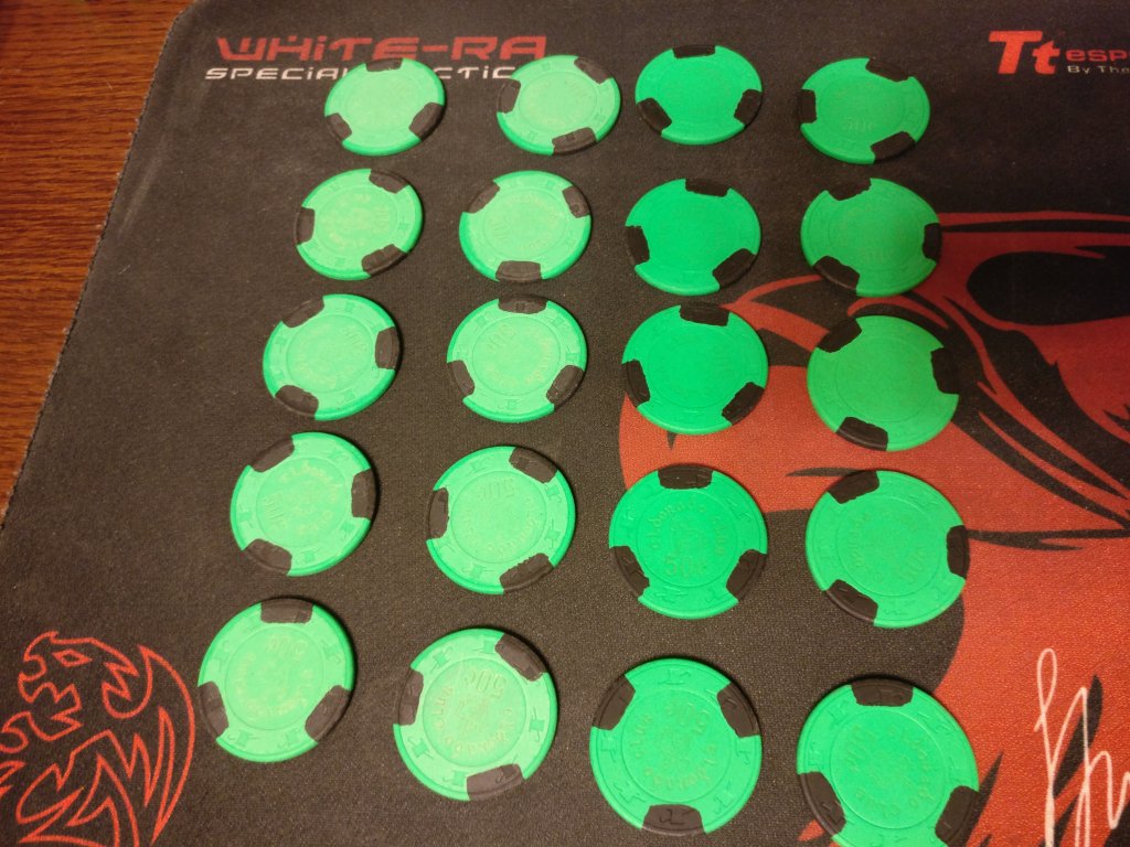 2) Don't try to guess the colours of your chips until you've cleaned them. I mis-guessed on three large lots, and several singles.