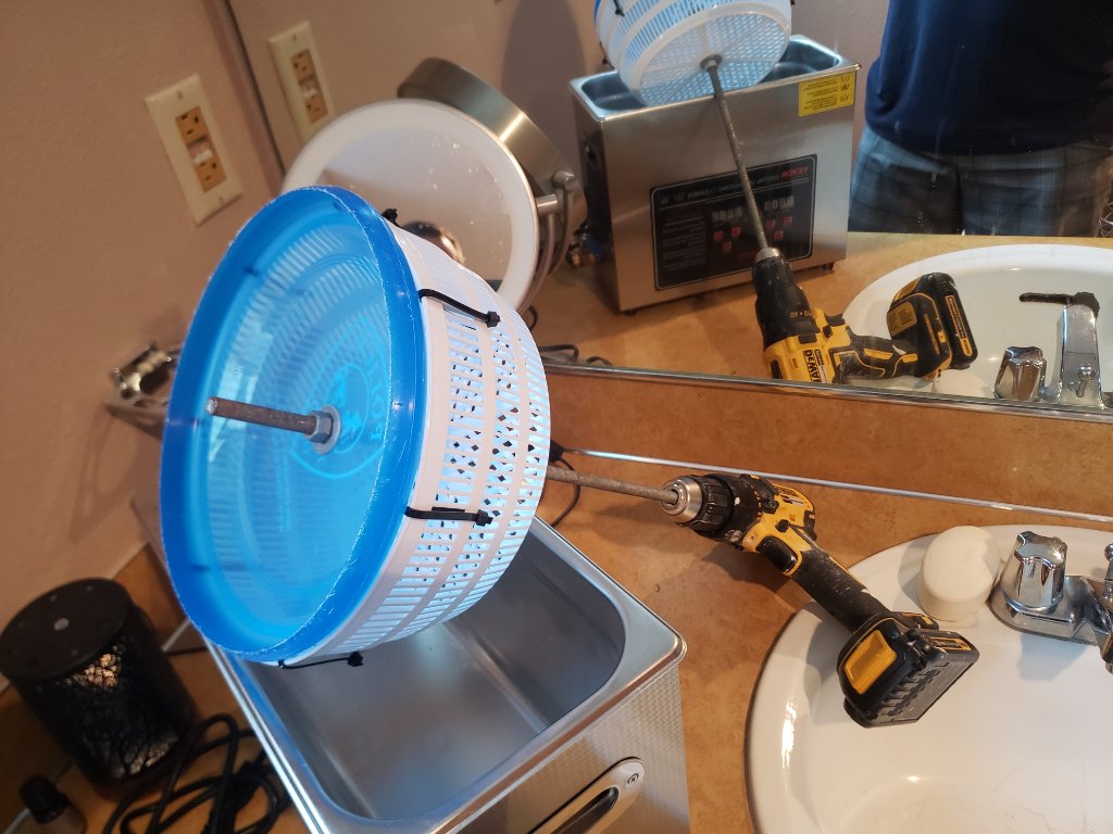 1. Load the Chips: Place the chips in a basket or holder (many use a plastic salad-spinner basket) so they are not resting on the tank floor. For example, ~40 chips can be cleaned per batch in a rotating cage .