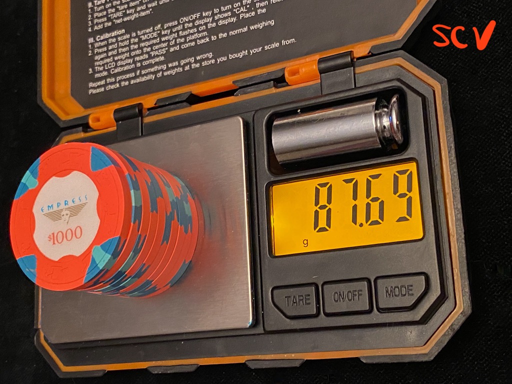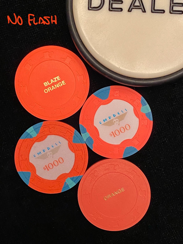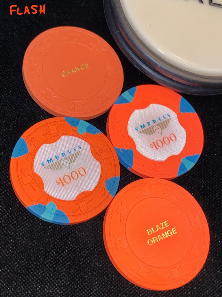 As an Empress owner with racks of both Primary SCV $1,000 and Primary LCV $1,000 chips, I can say with a high degree of confidence that ALL of them are Paulson Blaze Orange.