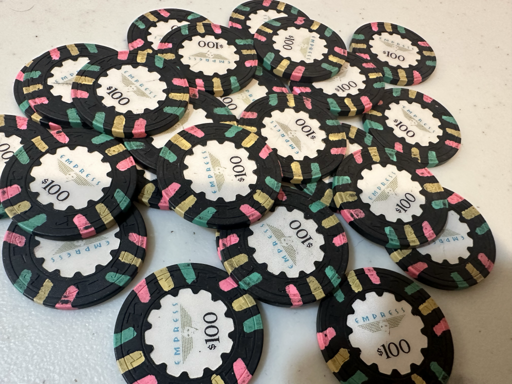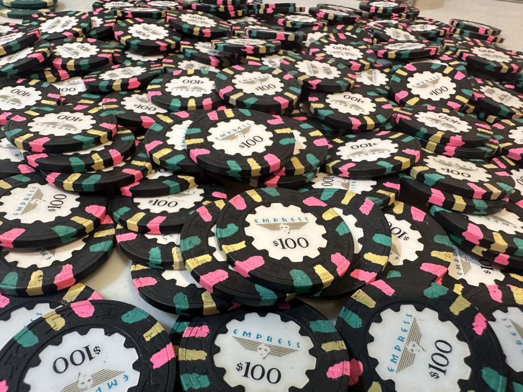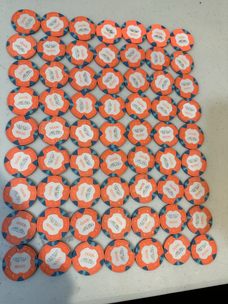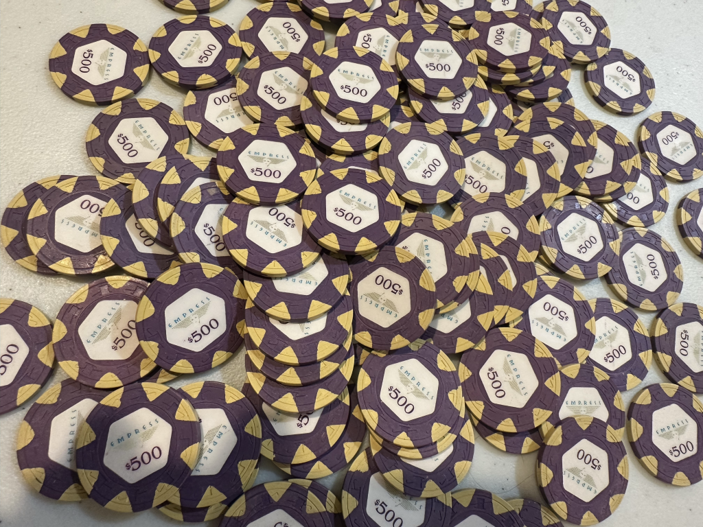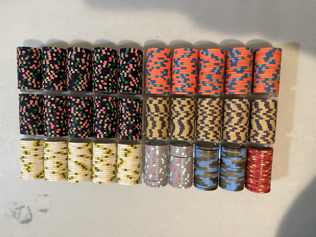 Hoping to find a single buyer and open to discussing valuations. It's been hard to find any relevant comps for a lot of these, as the higher denominations rarely come up for sale in full racks. And things like the $5k plaques and bubble gum snappers are next to impossible to find in any quantity.