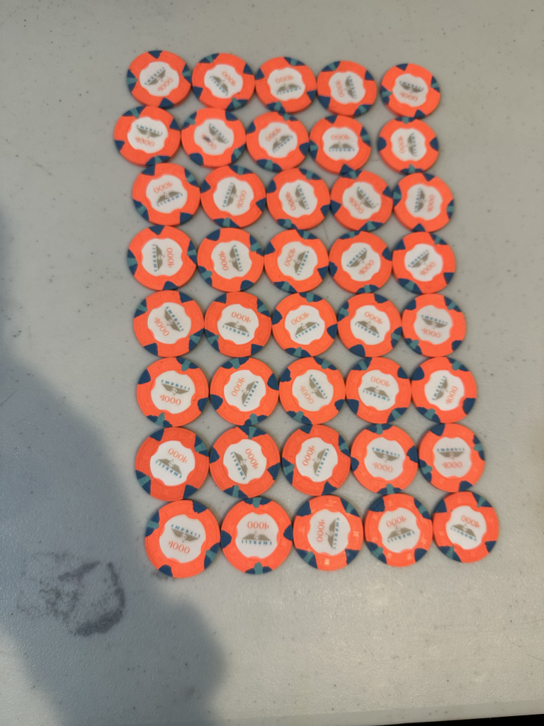 If it goes to split I'm interested in the $1k plaques, poker sized cut cards, seating chips and dealer buttons.